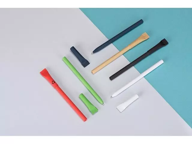 Ручка с корпусом из переработанной бумаги. Оригинальный дизайн, приятная на ощупь поверхность. Картон позволяет легко делать нанесение как на теле ручки, так и на колпачке.