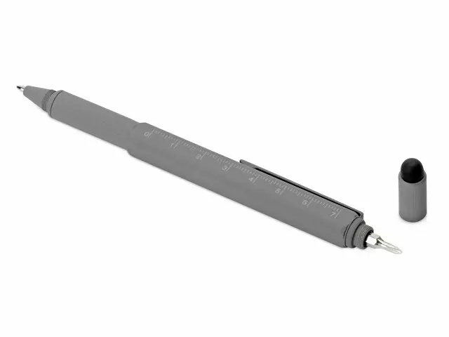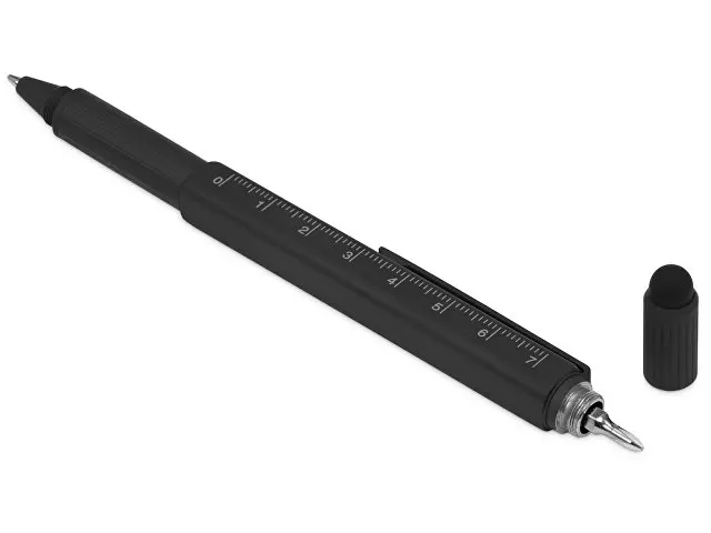 Четырехгранная металлическая ручка в одном корпусе сочетает несколько полезных функций: • Стилус для работы с устройствами с сенсорными экранами. • Под стилусом располагаются крестовая и шлицевая отвертки. • В металлический корпус встроен уровень, на корпусе линейка. • Стальной клип будет держать ручку надежно в кармане. • Возможность нанесения логотипа сразу на несколько граней ручки.