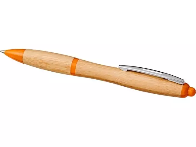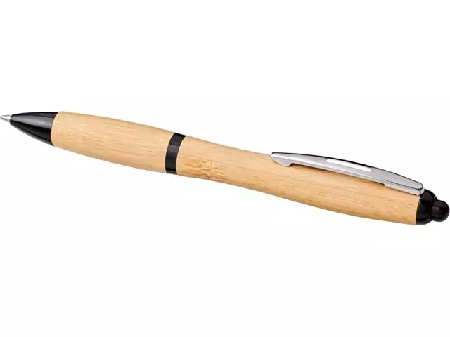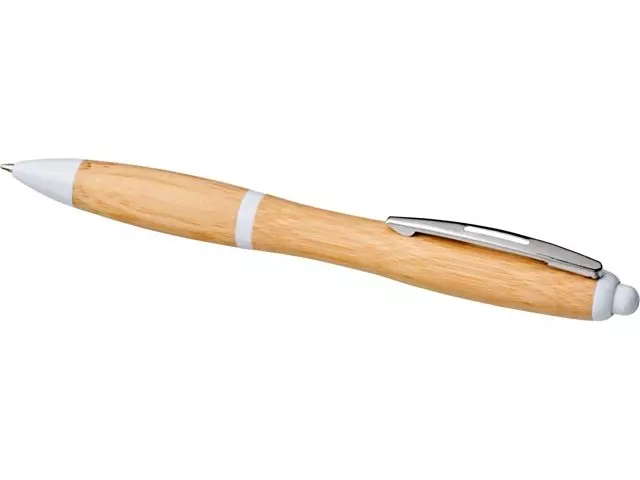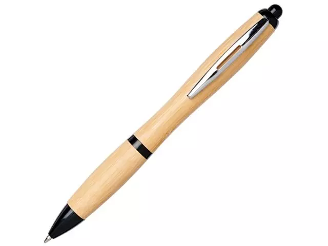 Шариковая ручка Nash из бамбука. Экологически чистая кнопочная шариковая ручка с корпусом из бамбука, хромированным зажимом и отделкой из АБС-пластика. Цвет бамбукового материала может отличаться. Бамбук, АБС-пластик.