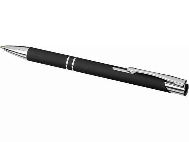 Шариковая кнопочная ручка Moneta с матовым антискользящим покрытием. Резиновое покрытие делает ручку мягкой на ощупь, а после лазерной гравировки на ее поверхности проявляется серебристый цвет. Шариковая кнопочная ручка с черным резиновым покрытием, хромированной отделкой и черным колпачком из АБС-пластика. Обширный ассортимент популярных продуктов Moneta представлен в различных стилях и вариантах отделки. Резиновое покрытие, алюминиевый корпус.