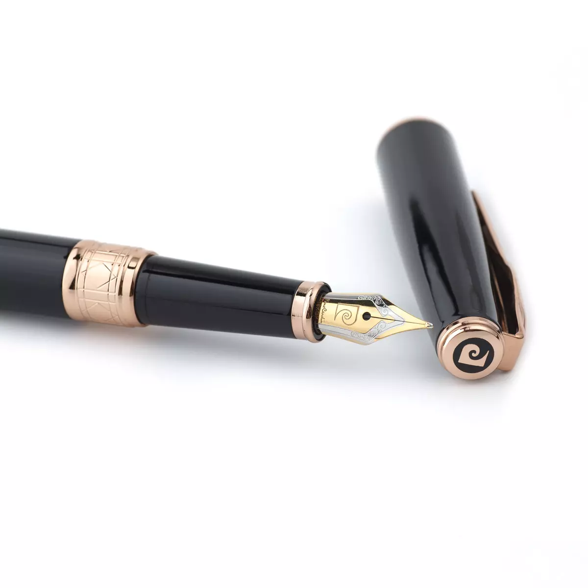 Ручка перьевая Pierre Cardin, SECRET Business. Корпус и колпачок - латунь и лак. Отделка и детали дизайна - сталь, позолота. Съемный колпачок. Перо - нержавеющая сталь с позолотой. Размер пера - средний (М), 0,7-0,8 мм. Цвет- черный. Упаковка B