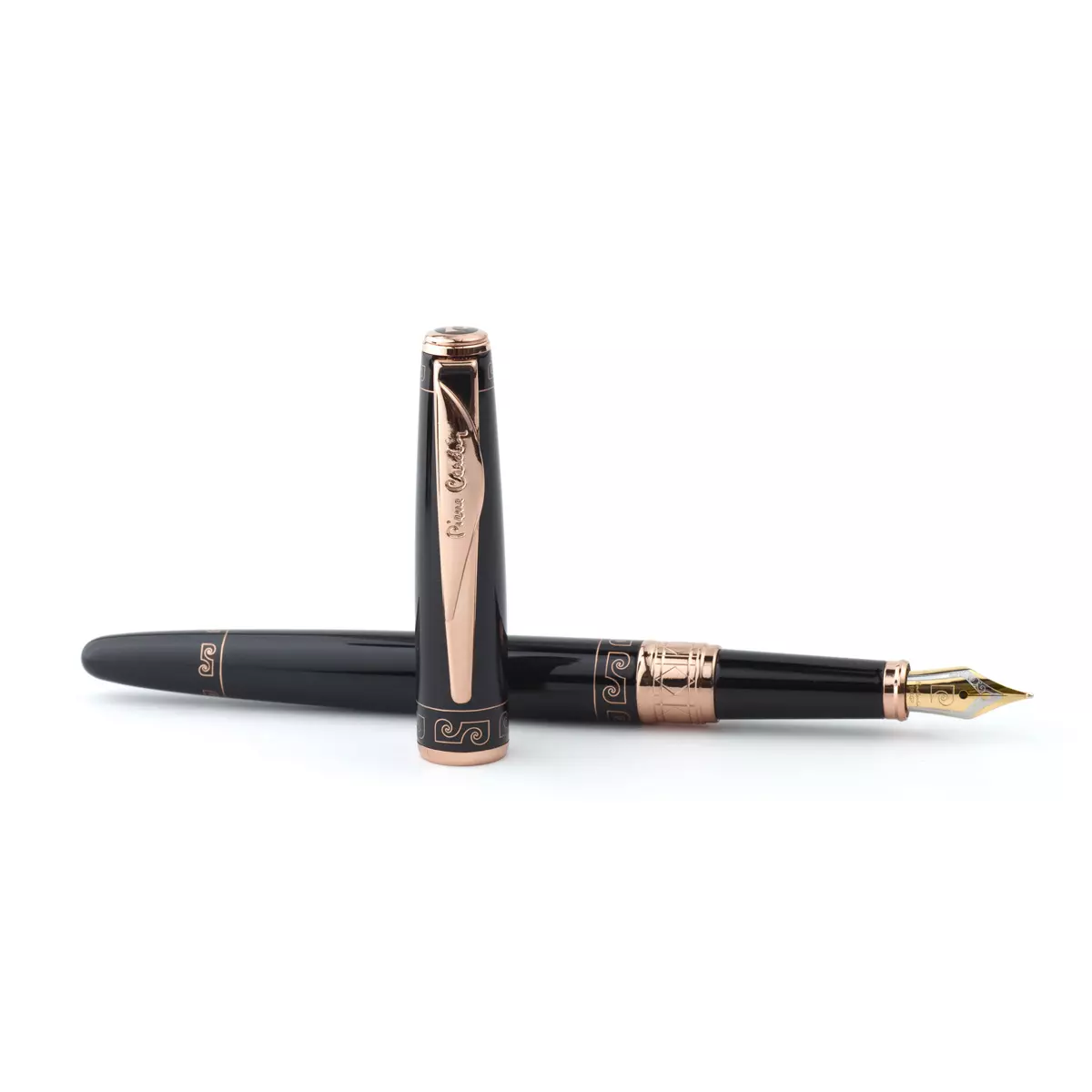 Ручка перьевая Pierre Cardin SECRET Business. Корпус и колпачок - латунь и лак. Отделка и детали дизайна - сталь, позолота. Съемный колпачок. Перо - нержавеющая сталь с позолотой. Размер пера - средний (М), 0,7-0,8 мм. Цвет - черный с золотистым орнаментом. Упаковка B