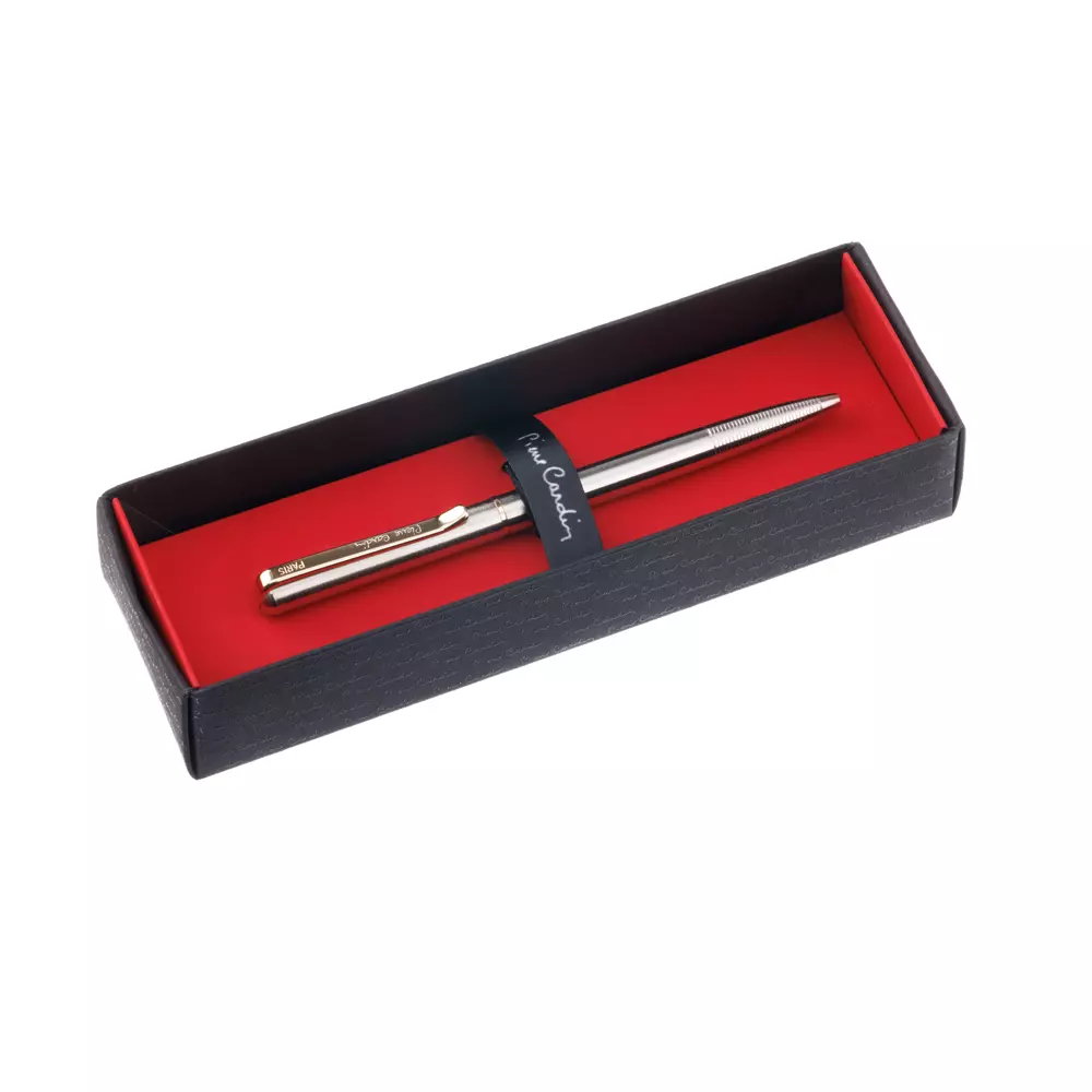 Ручка шариковая Pierre Cardin GAMME. Корпус - латунь. Отделка - стальное покрытие. Детали дизайна - сталь с позолотой. Цвет - стальной. Упаковка E.
