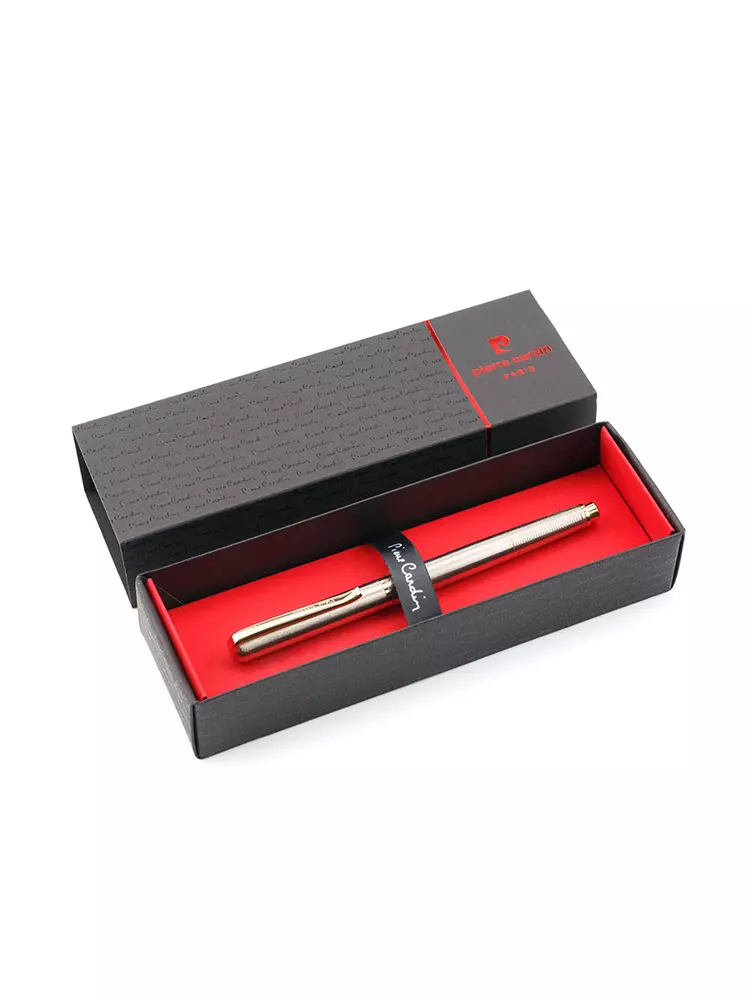 Ручка-роллер Pierre Cardin GAMME. Корпус - латунь. Отделка - стальное покрытие. Детали дизайна - сталь с позолотой. Съемный колпачок. Цвет - стальной. Упаковка E.