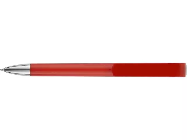 Пластиковая ручка с цветным корпусом и серебристым носиком привлечет внимание своим необычным дизайном: при нажатии на кнопку двигается только часть клипа, а вторая – остается на месте. Из шести расцветок можно выбрать ту, что наилучшим образом подойдет к вашим фирменным цветам.