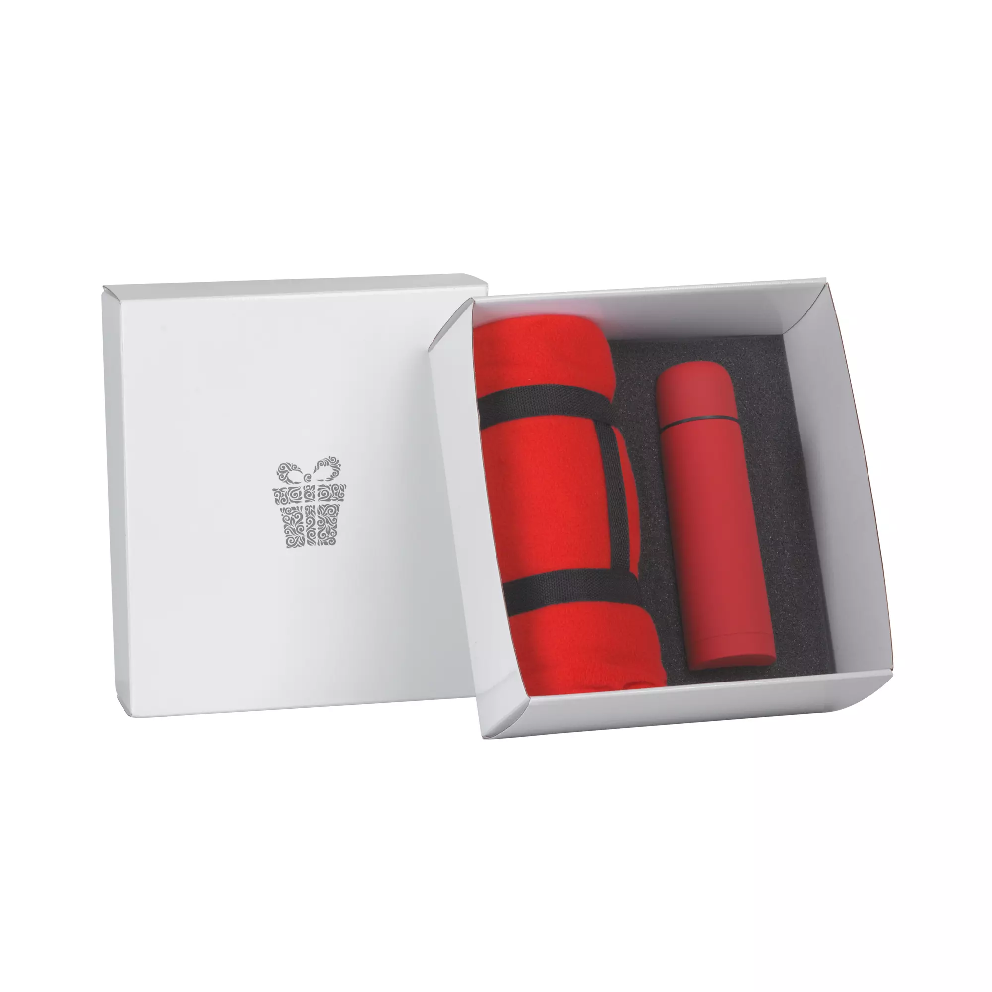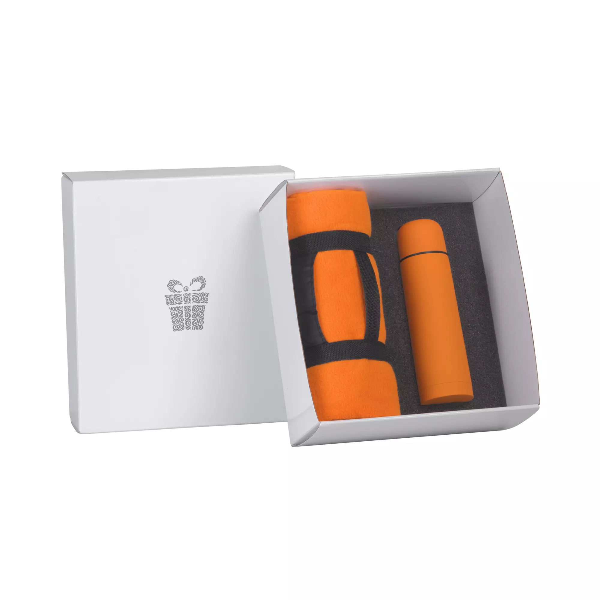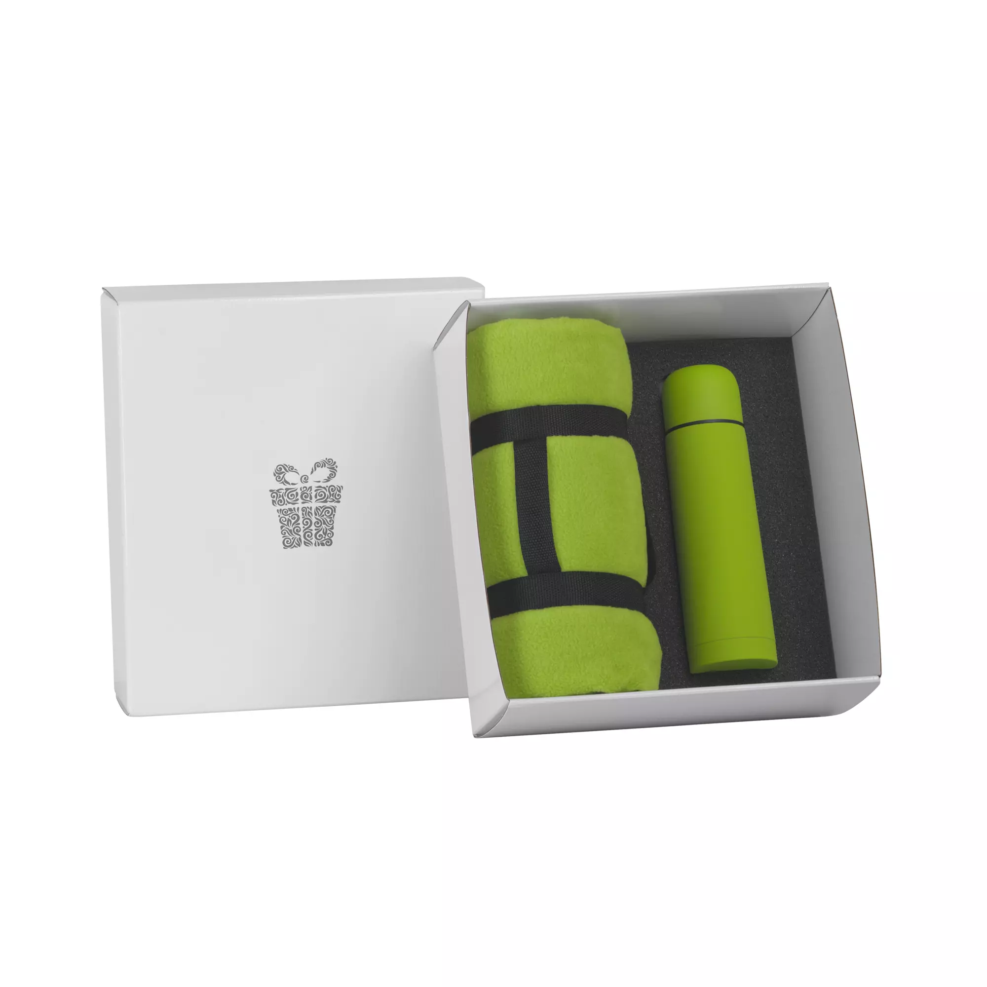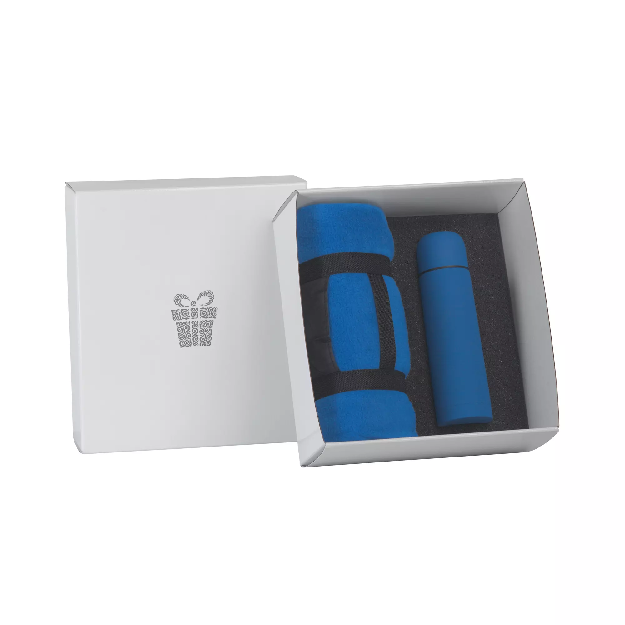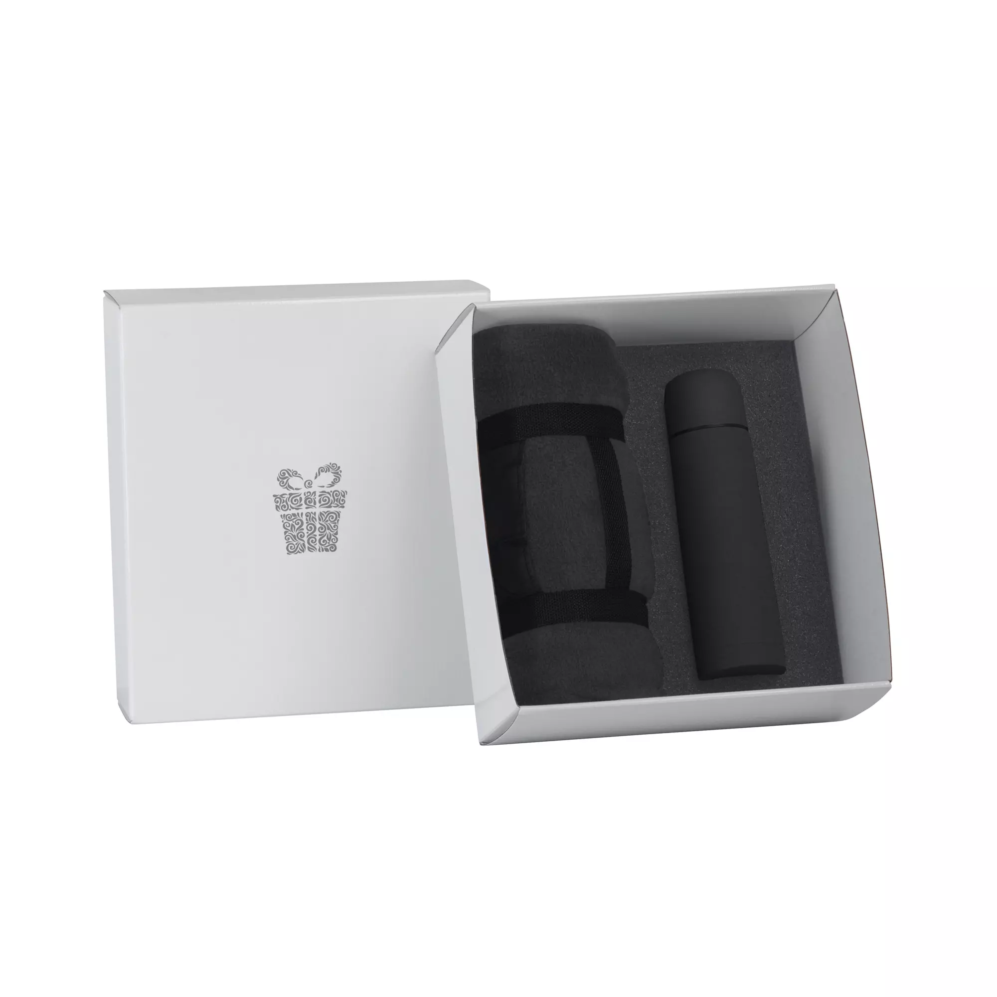 В набор входят: арт. 6330 термос "Крит" с покрытием soft touch, объем 0,5 л.; арт. 8376 плед "Байкал"; коробка подарочная с ложементом.
