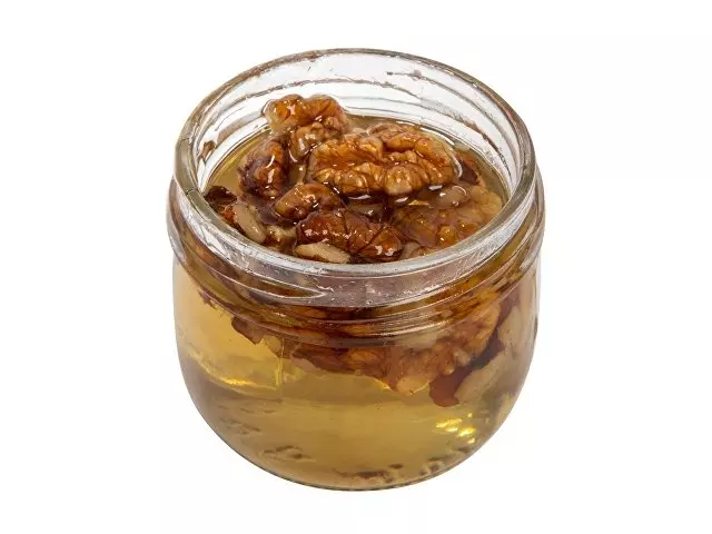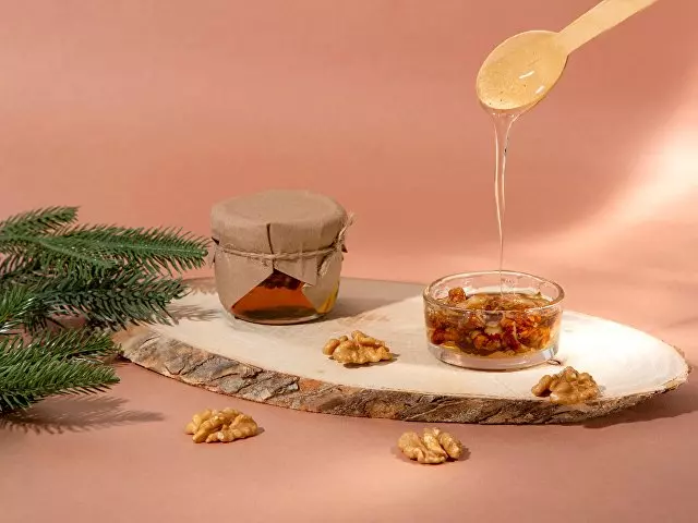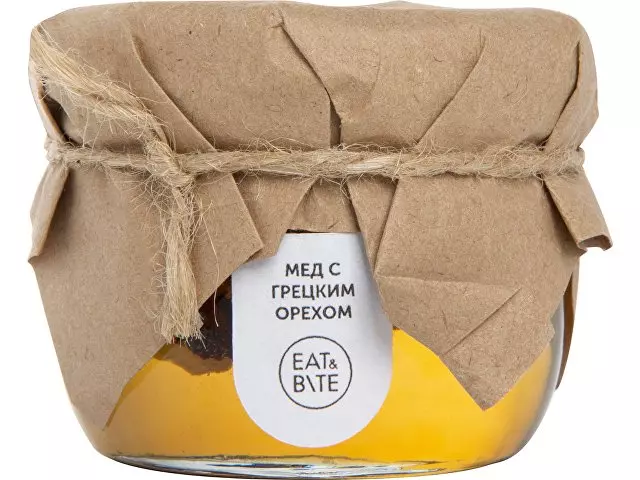 Мед и орехи прекрасно сочетаются друг с другом, образуя оригинальный и запоминающийся вкус. Медовый десерт идеально подойдет для чаепития, поэтому подобный подарок можно также дополнить чаем. Так как продукт состоит из натуральных ингредиентов, возможно его засахаривание.