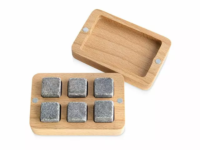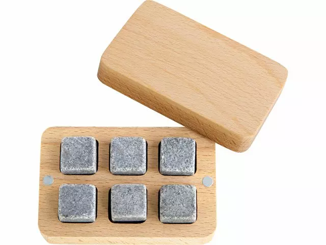 Камни для виски выполнены из талькохлорита, природного материала, также известного как мыльный камень. Они абсолютно безопасны для человека, не окрашивают напитки, в том числе алкогольные, и не меняют их вкус и цвет, а также не меняются при соприкосновении с жидкостями сами. Камни не крошатся, не царапают поверхность сосудов, в которых находятся, благодаря чему их можно использовать и в стеклянных бокалах для крепких напитков. Важное преимущество камней для виски заключается в том, что в отличие от ледяных кубиков талькохлоритные не тают в напитке, а значит, не разбавляют алкоголь, лишь непосредственно охлаждая его. Перед использованием кубики нужно положить в морозильную камеру на несколько часов, а затем поместить в бокал для виски. Готово! Подарочная коробка из бука не только позволит преподнести набор должным образом, но и поможет обладателю в дальнейшем правильно хранить камни. Коробка-футляр состоит из двух половинок с отверстиями под каждый камень, закрывается на 8 магнитов, закрепленных по углам половинок. - необычный тип футляра на магнитах - талькохлоритные камни безопасны для человека и не изменяют вкус, цвет, запах напитков - просты в использовании - многочисленные возможности для персонализации - природные материалы высокого качества Для продления жизни футляра для камней его можно смазывать растительным, оливковым, льняным маслом. Не замачивать футляр в воде, не пересушивать. На время пропитки футляра маслом камни следует извлечь из выемок.