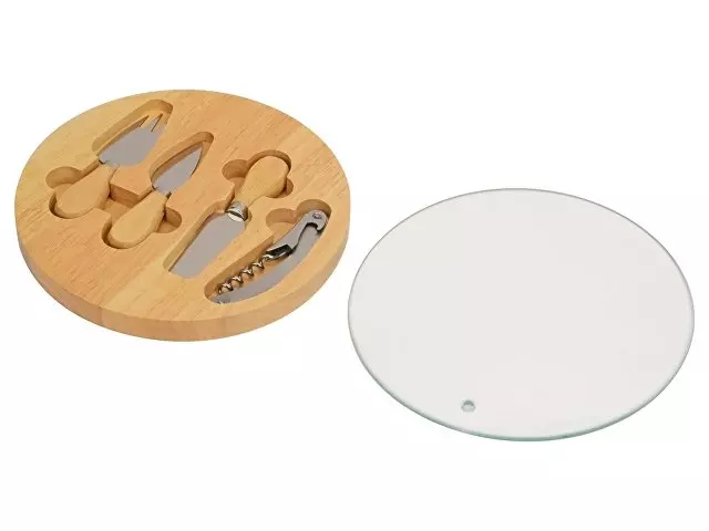 Набор "Rendezvous" - отличный подарок для тех, кто любит приятно провести вечер за бокальчиком любимого вина и вкусных закусок. Набор включает включает в себя 3 вида ножей для разных сортов сыра и винный штопор. Все предметы выполнены из высококачественных материалов. Поставляется в стильной деревянной коробке со стеклянной крышкой, на которой выигрышно будет смотреться любой корпоративный слоган или логотип компании. Набор включает в себя: - листовидный нож для твердых сортов сыра, - нож-лопатка для мягких сортов сыра, - вилка для сыра, - штопор для вина - разделочная стеклянная доска с поворотным механизмом (крышка). Внимание, набор поставляется в разобранном виде для удобства нанесения.