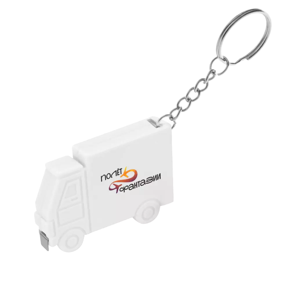 Брелок-рулетка в виде грузовика. Нанесение корпоративной символики уф-печатью или тампопечатью