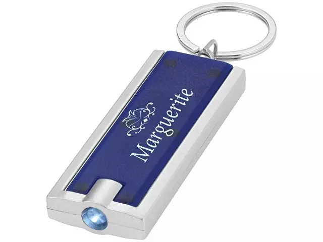 Брелок-фонарик Castor. Брелок с ярким светодиодным фонариком с кнопкой. Металлическое кольцо для ключей. Батарейки включены в комплект. АБС-пластик.