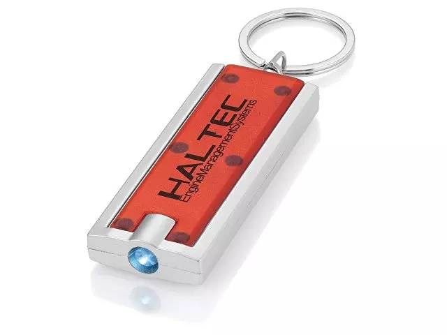 Брелок-фонарик Castor. Брелок с ярким светодиодным фонариком с кнопкой. Металлическое кольцо для ключей. Батарейки включены в комплект. АБС-пластик.