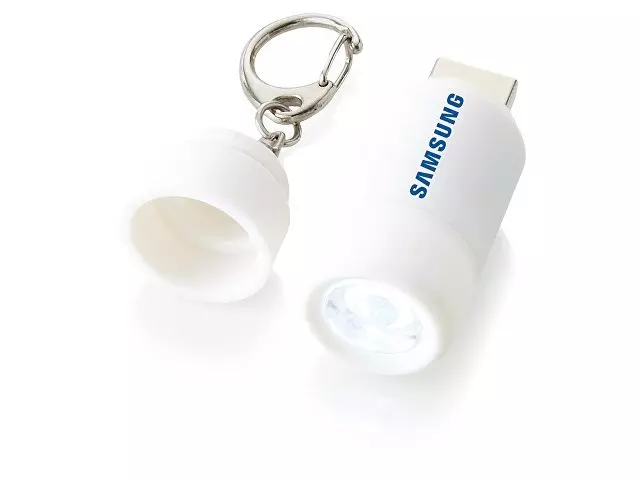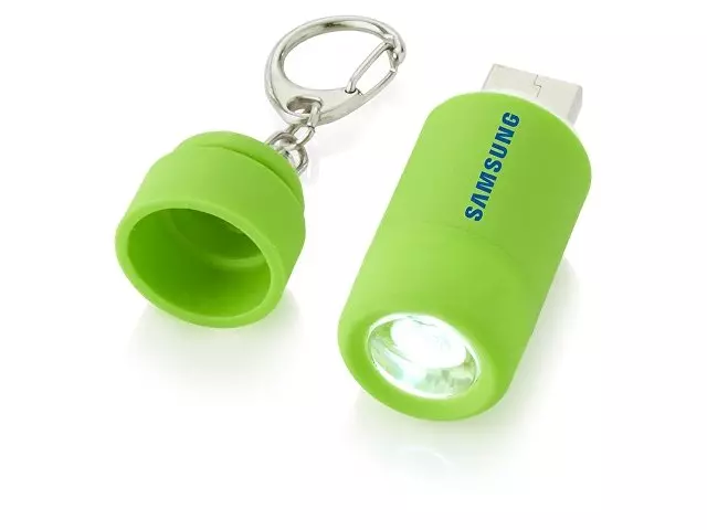 Брелок-фонарь Avior с зарядкой от USB. Светодиодный фонарик с зарядкой от USB с поворотной кнопкой вкл/выкл и металлическим кольцом для ключей. Батарейка включена в комплект. АБС-пластик с мягким на ощупь покрытием.