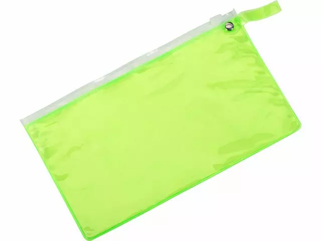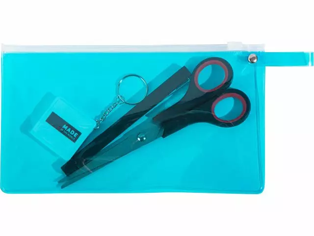 Яркий пенал из ПВХ закрывается на zip-замок. На этот пенал можно нанести название компании и вложить в него несколько сувениров небольшого размера.