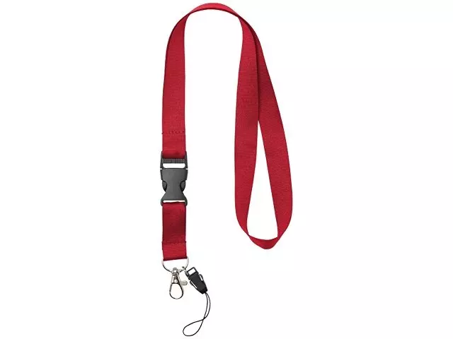 Многофункциональный шнурок с отстегивающейся пряжкой, овальным крючком с зажимом и держателем для телефона. Идеально подходит для бейджа, удостоверения личности или ключей. Предлагается широкий выбор цветов с большим участком для нанесения логотипа. Полиэстер.