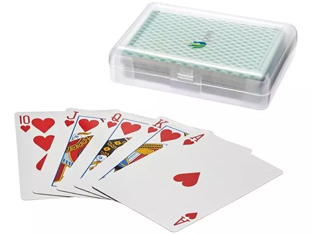 Карточная игра Reno в футляре. Классическая карточная колода с 3 джокерами. Упакована в пластиковый футляр.