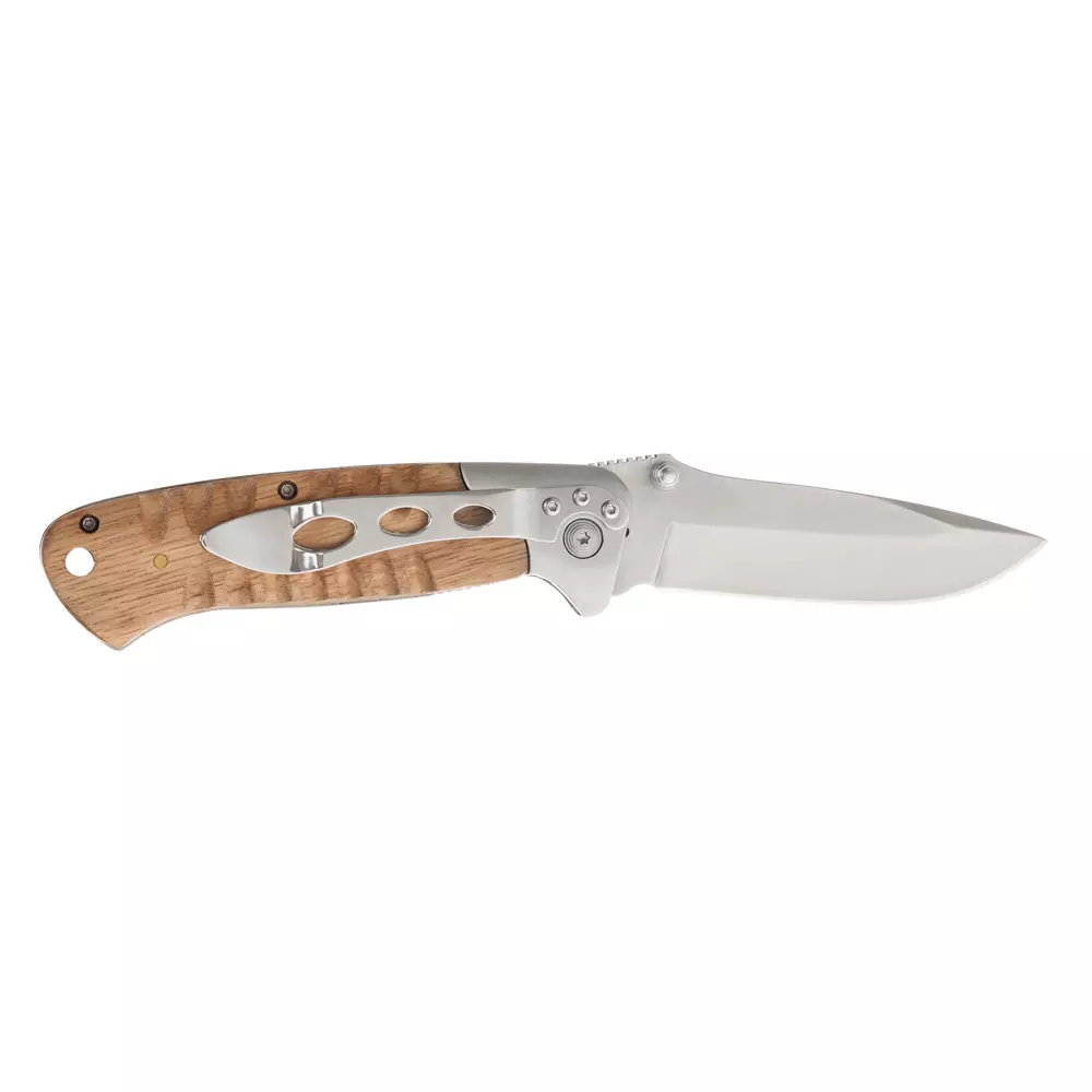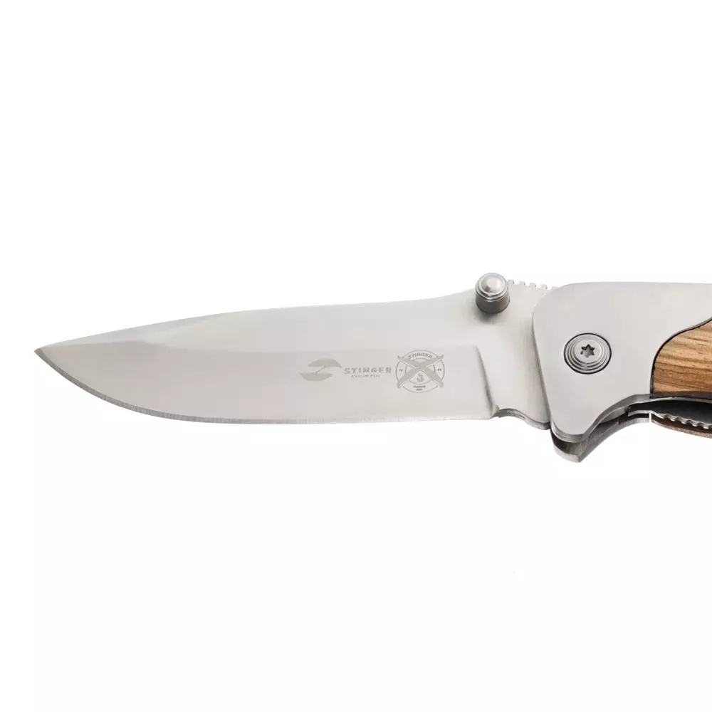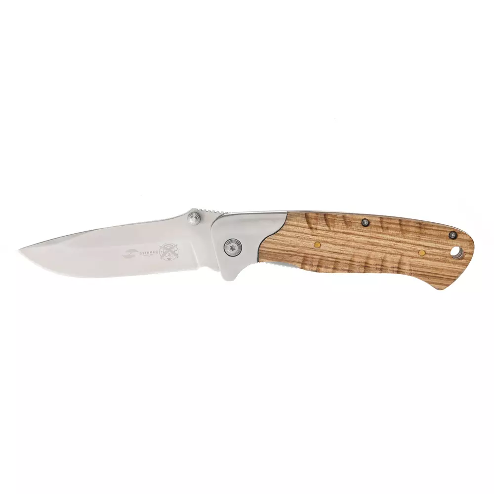 Нож складной Stinger, 85 мм (серебристый), рукоять: сталь/дерево (серебр.-корич.), коробка картон