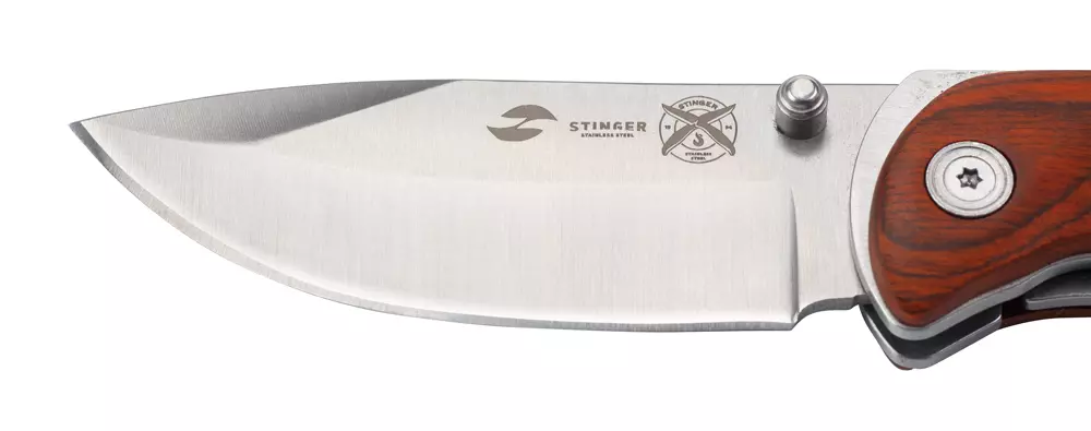 Нож складной Stinger, 91 мм длина лезвия, (серебристый), рукоять: сталь/дерево (серебристо-коричневый), картонная коробка