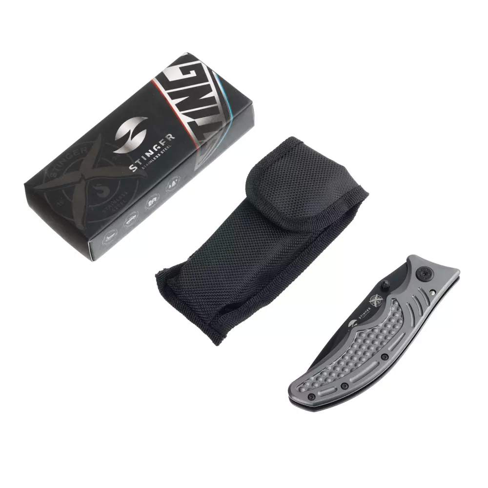 Нож складной Stinger, 90 мм - длина клинка, (черный), рукоять: сталь/алюминий (черный), коробка картон
