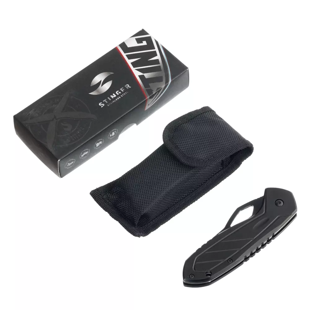 Нож складной Stinger, 120,65 мм, рукоять: алюминий, (чёрный), с клипом, картонная коробка