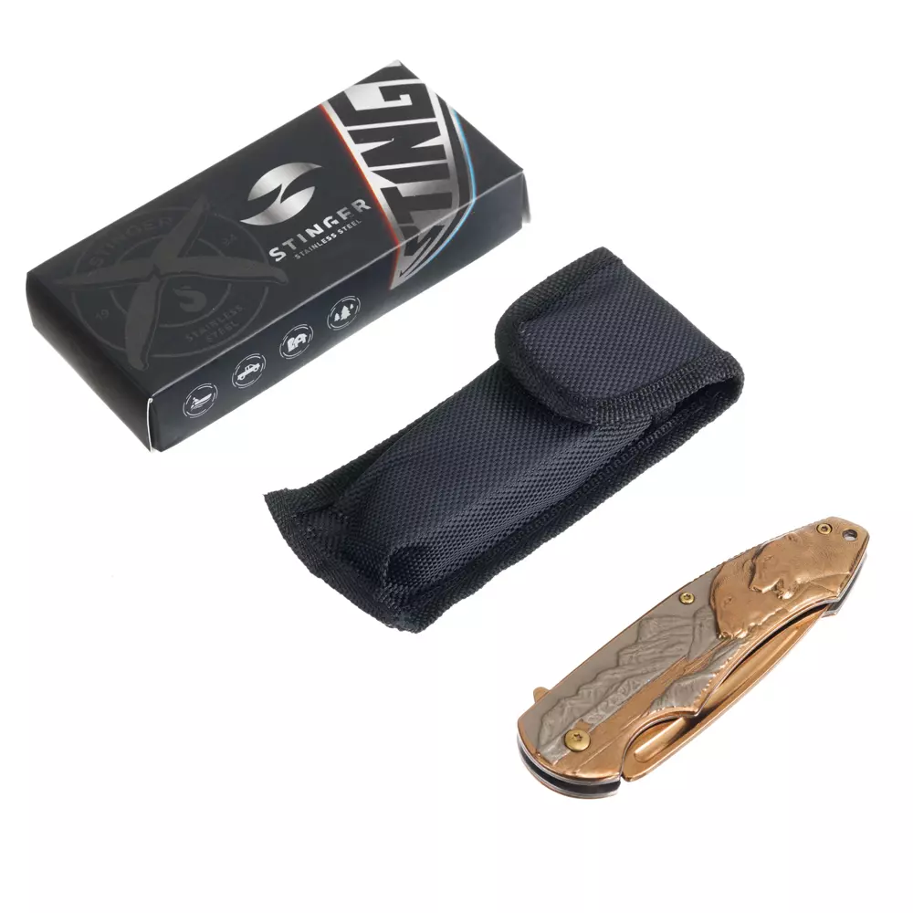 Нож складной Stinger, 84 мм (бронзовый), рукоять: сталь (серый и бронзовый), картонная коробка