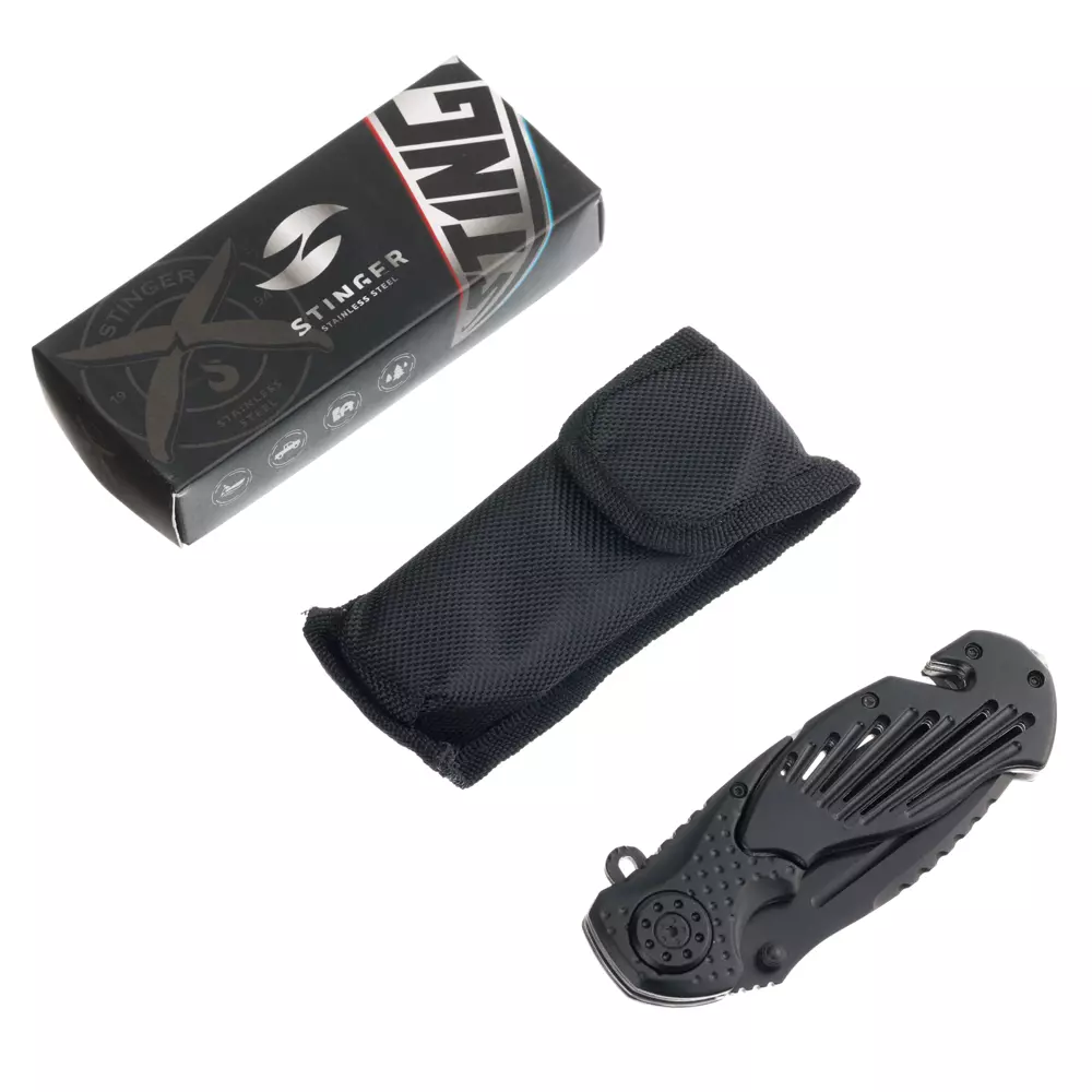 Нож складной Stinger, 85 мм - длина клинка, (черный), рукоять: сталь (черный), коробка картон