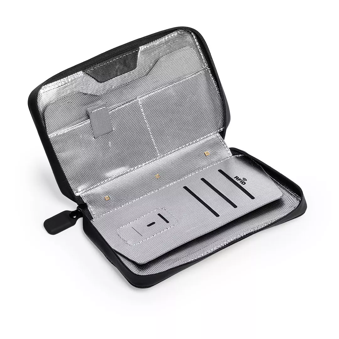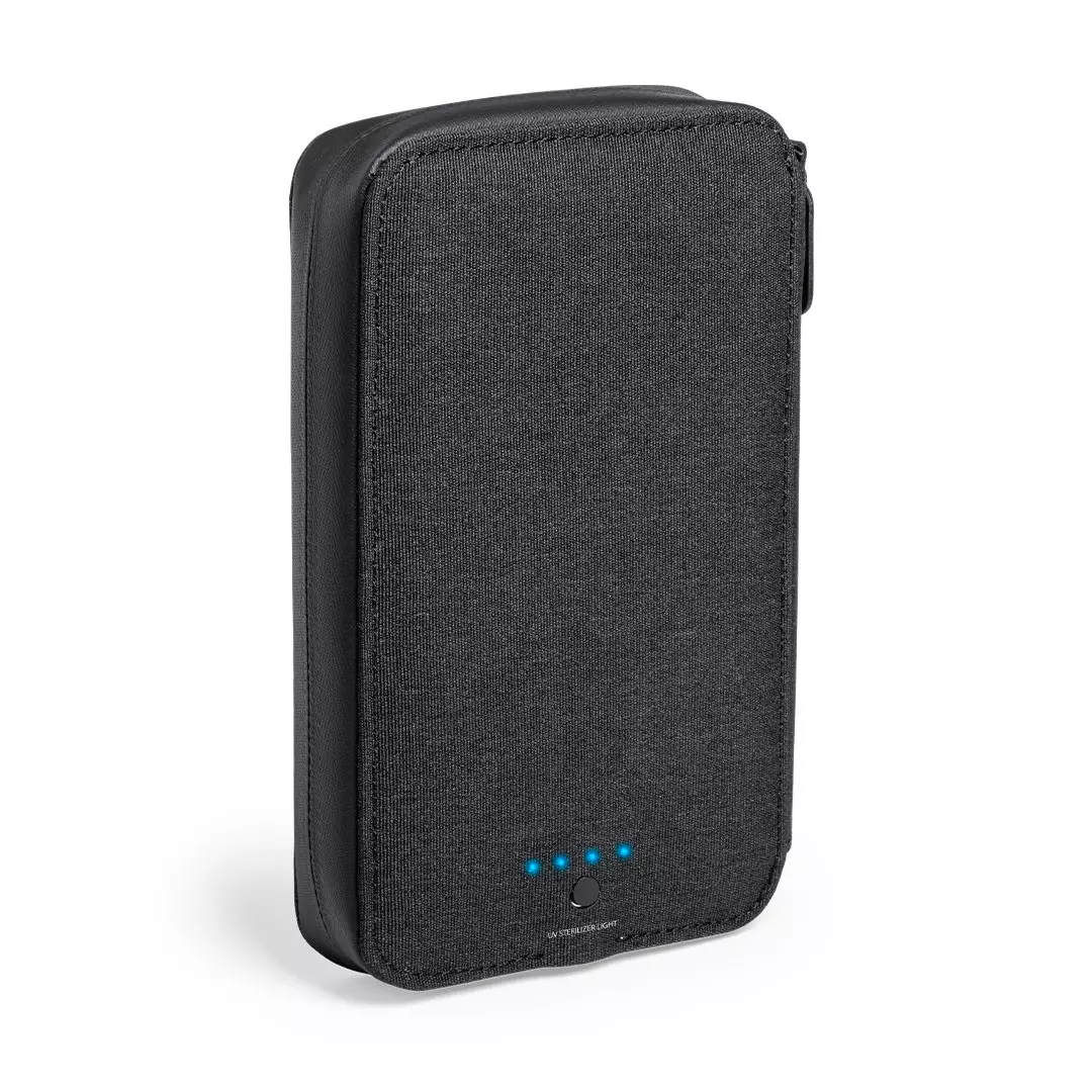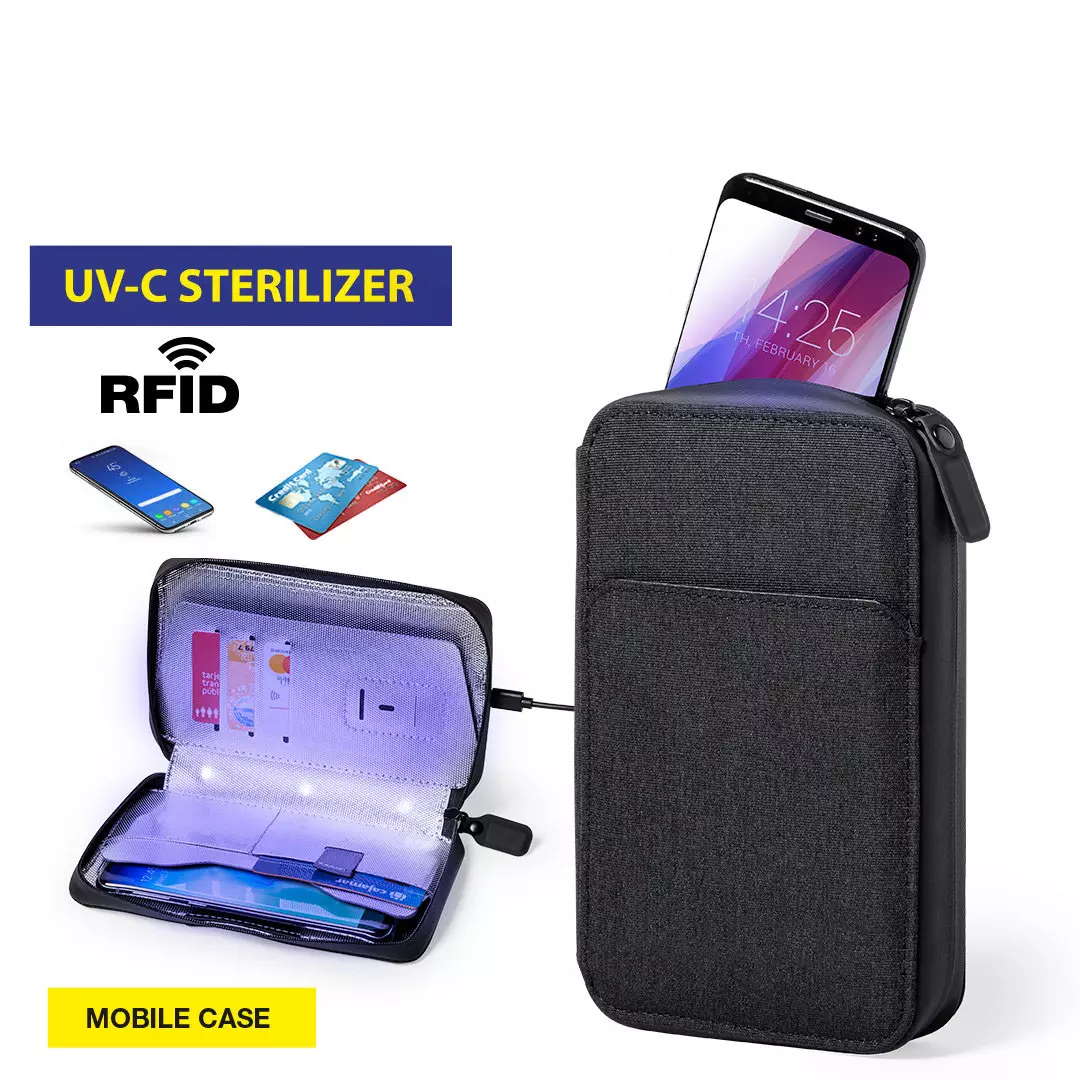 Органайзер с функцией УФ(UV)-стерилизации позволяет эффективно проводить обработку поверхности смартфона, банковских карт, денежных купюр и всевозможных аксессуаров, размещённых во внутреннем отделении. В процессе работы генерируется излучение мощностью более 2500 Вт/см2 с длиной волны 275 нм (тип C), эффективно подавляющее вредные микроорганизмы и бактерии. Внутреннее отделение имеет специальное покрытие, которое равномерно рассеивает лучи, а также служит экраном, обеспечивающим RFID-защиту содержимого (препятствует считыванию данных банковских карт). 2 режима стерилизации - 1 и 3 минуты, с автоматическим отключением. В комплекте кабель Type С 100 см.