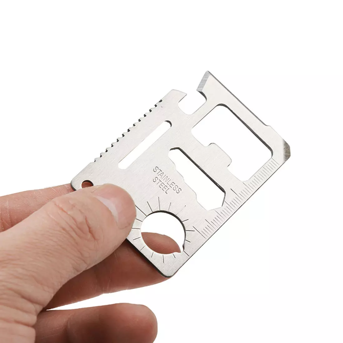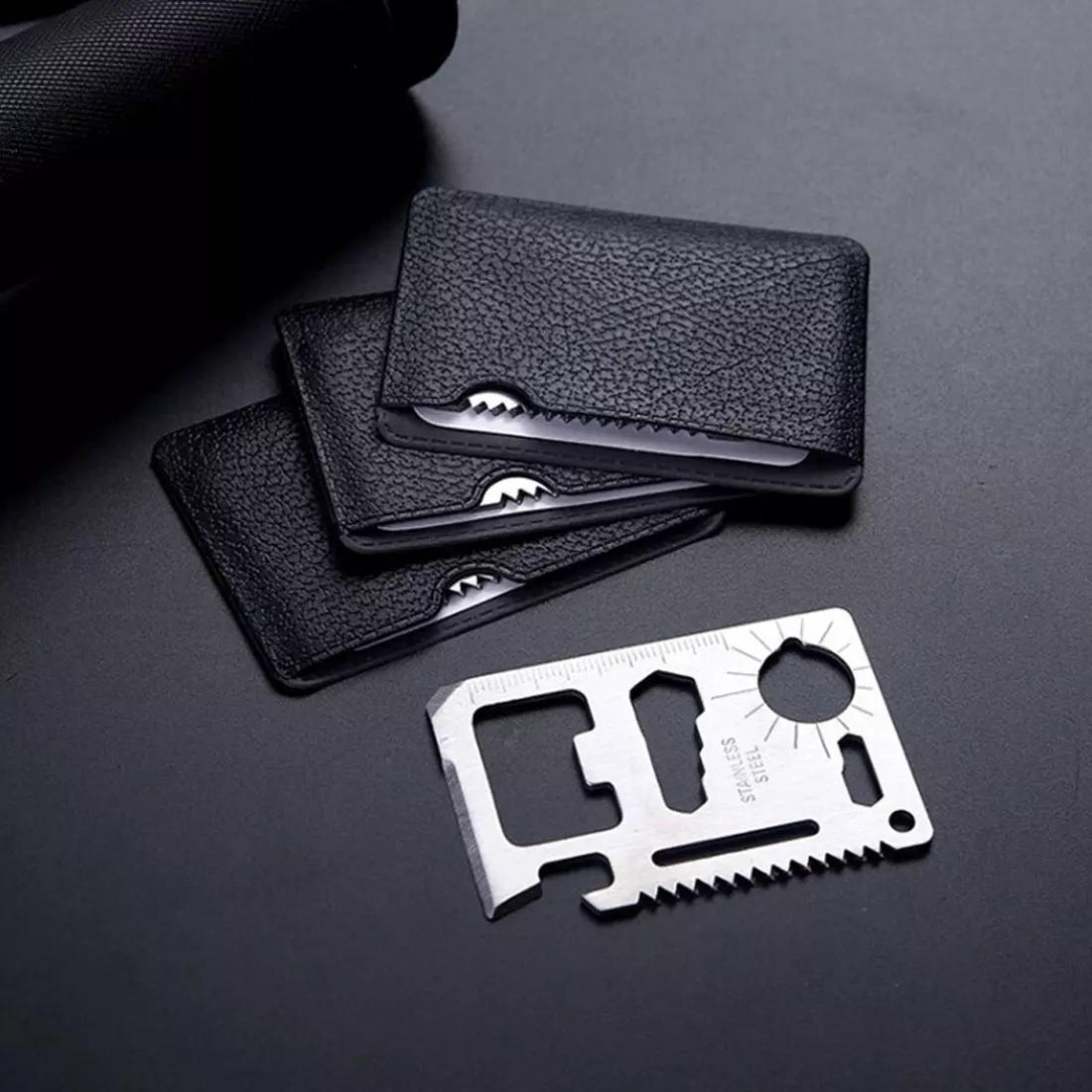 В комплект входят защитный чехол и идентификационная карточка инструмента. Небольшой инструмент для выживания - необходимая вещь, которую можно использовать в экстренных ситуациях. Мультиинструмент изготовлен из высококачественной нержавеющей стали, поэтому он не изгибается, не ломается и не ржавеет.