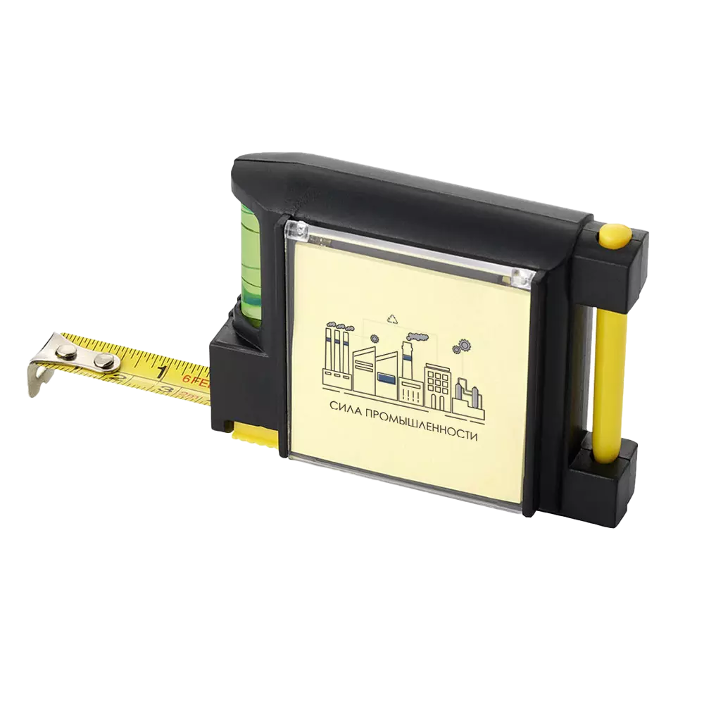 Мультифункциональная рулетка Йена 4 в 1 включает рулетку 2м + уровень + карандаш + компактный блокнот. Размер - 8см x6см x2.4 см