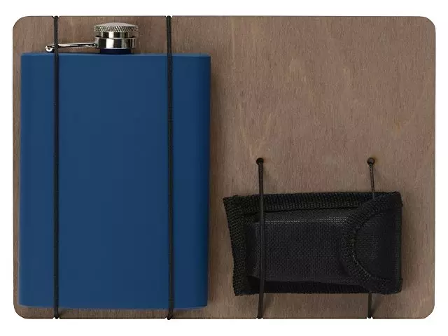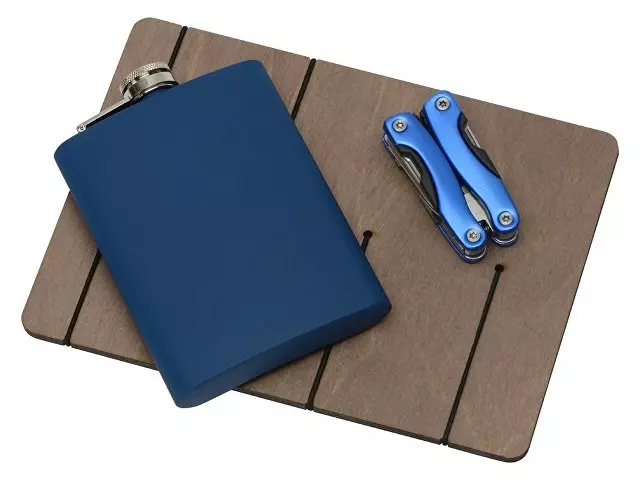 фляжка- нержавеющая cталь с покрытием soft-touch, мультиинструмент- металл, ложемент- фанера