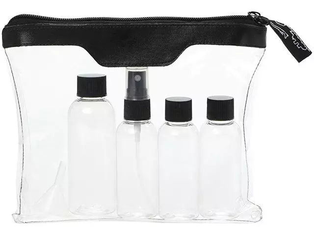 Одобренный дорожный набор бутылок для полетов Munich. Сумка для туалетных принадлежностей, которую можно брать в самолет. Включает 2 бутылки по 50 мл, 1 бутылку на 90 мл, 1 пульверизатор и воронку. Бутылки, пульверизатор и воронка упакованы в полиэтиленовый кулек отдельно от чехла. ПВХ.