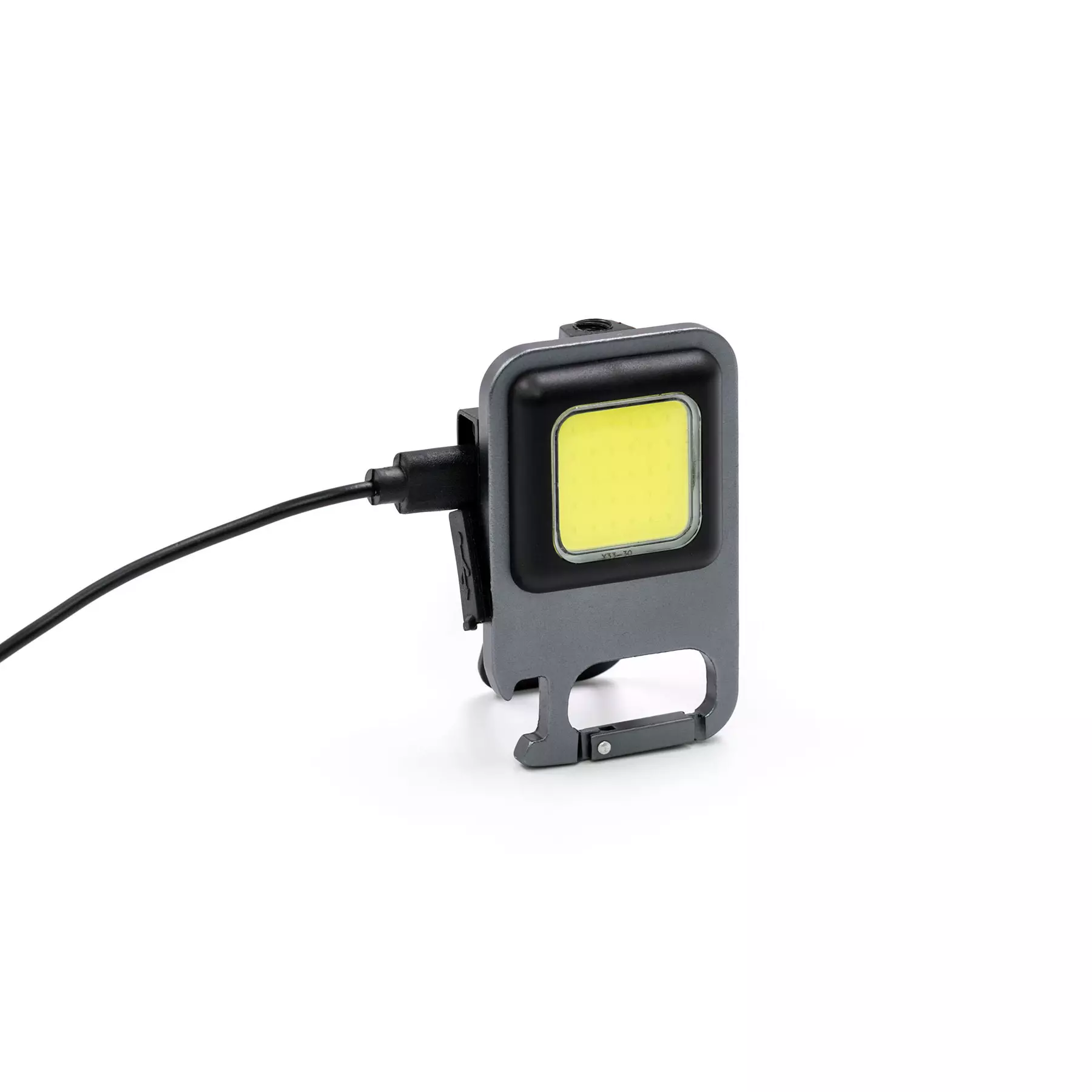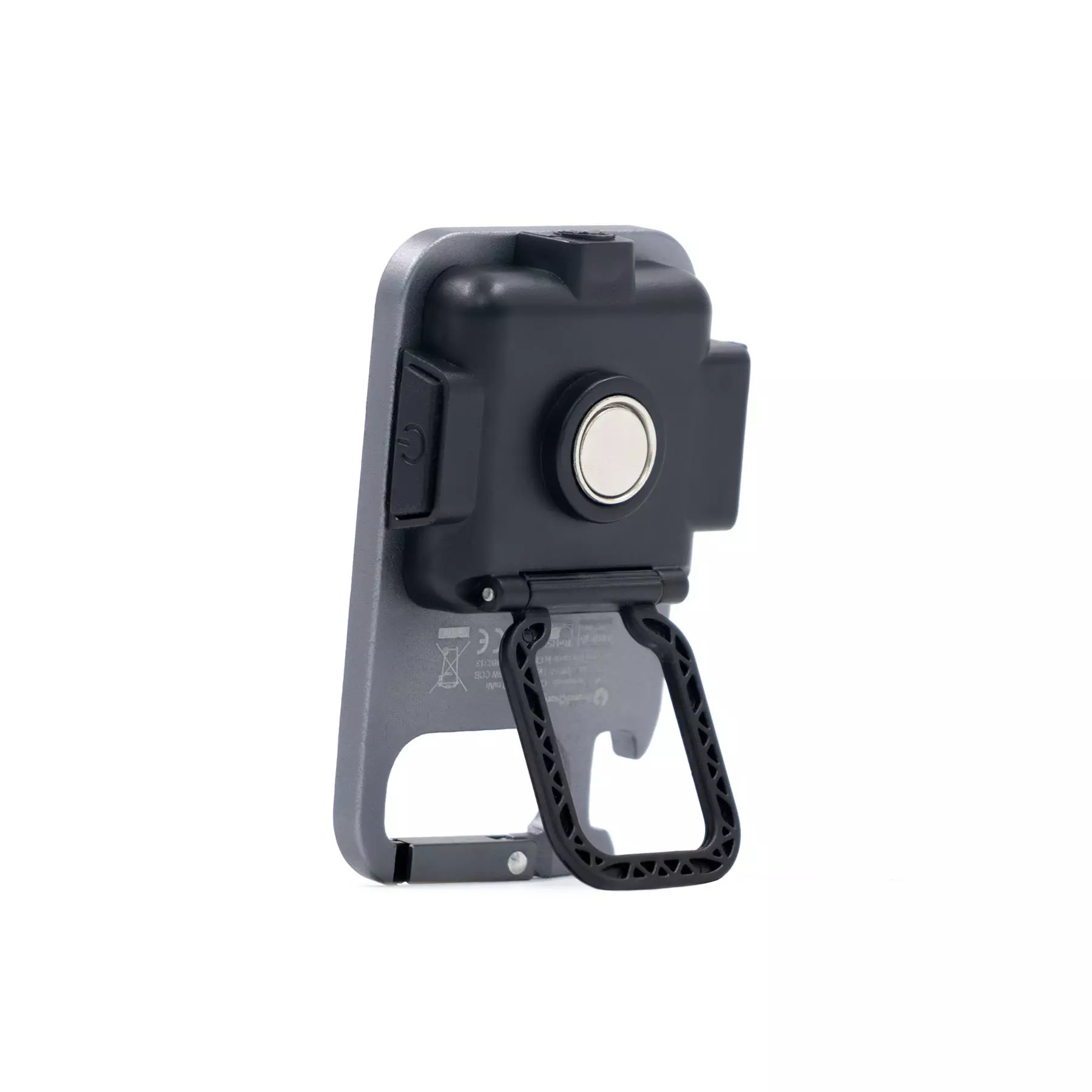 Компактный алюминиевый фонарь-мультитул с COB-светодиодом. Оснащён магнитным основанием для крепления к металлическим поверхностям, встроенной подставкой, карабином, открывалкой для бутылок и креплением под штатив. Максимальная яркость 500 люмен, аккумулятор 500 мА·ч, до 4 часов работы в стандартном режиме. Зарядка через USB-C, четыре режима освещения: экономичный, стандартный, мощный и строб (мигающий). Имеет влагозащиту уровня IPX4, устойчив к дождю и брызгам.