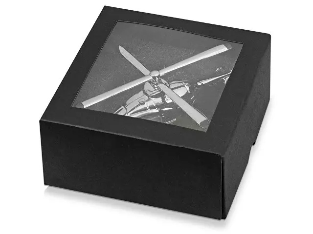 Оригинальные часы в форме вертолета на посадочной площадке. Площадка стилизована под зеленый газон. Корпус вертолета и подставка выполнены из полированного металла. Возможно нанесение оригинальной гравировки: текста поздравления, имени владельца или логотипа компании.