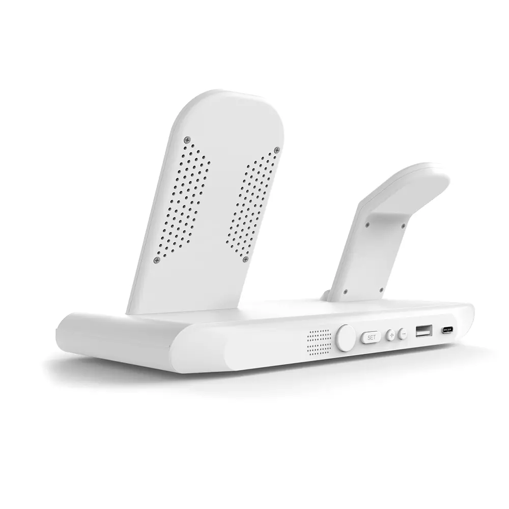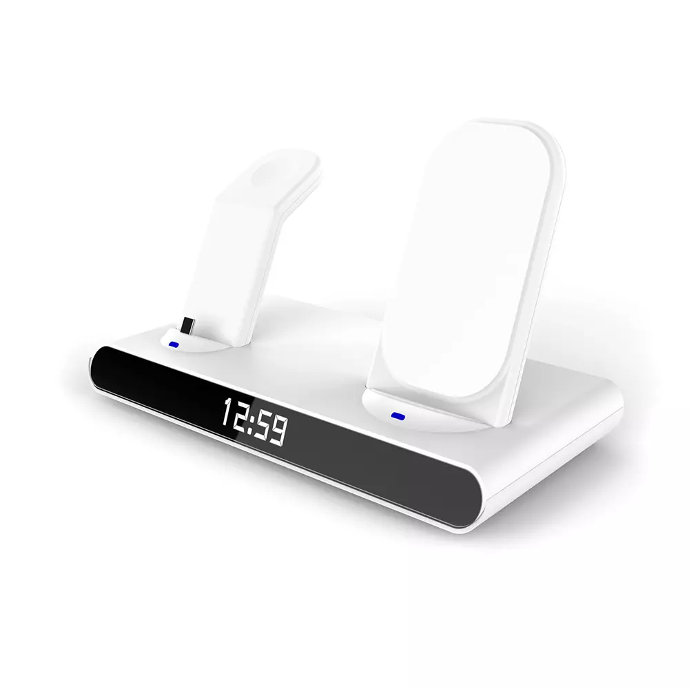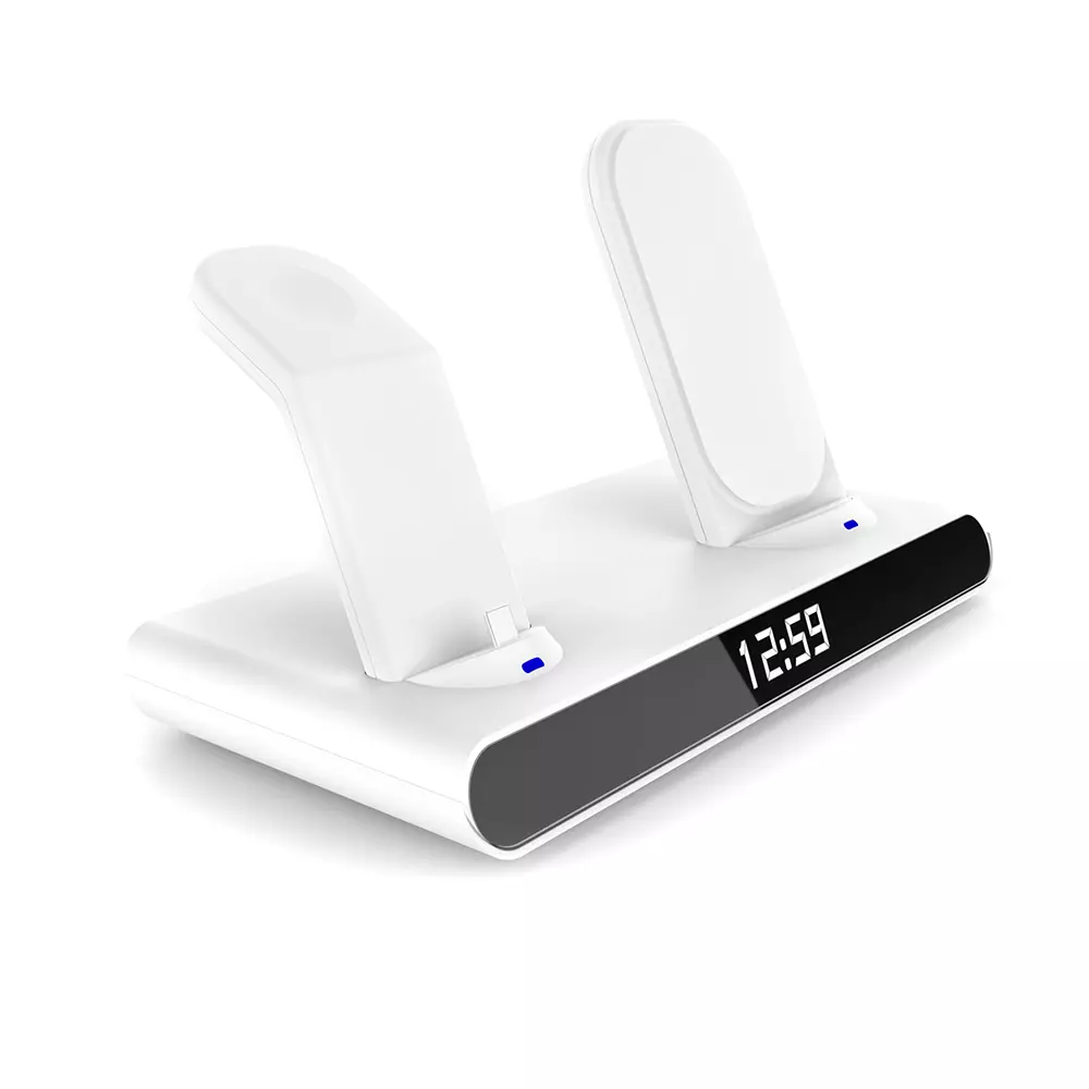 Часы электронные Abbatt мультифункциональные с беспроводной зарядкой. Особенность этих электронных часов заключается в том, что они выполянют функцию не только часов и будильника, а еще с их помощью можно заряжать свои гаджеты. Удобство беспроводной зарядки говорит само за себя - очень комфортно заряжать смартфон, часы и наушники, просто положив их на зарядную станцию, не подключая при этом к ним никаких кабелей. Также есть возможность быстрой зарядки Qi. При беспроводной зарядке устройство меньше подвержено перепадам в сети, чем при подключении к розетке, тем самым увеличивается срок службы аккумулятора. Благодаря интерфейсу Type-C (шнур идёт в комплекте 1м) ваши гаджеты будут заряжаться более эффективно, а главное - одновременно. Вы можете смотреть фильмы, слушать музыку, звонить или отправлять сообщения во время всего процесса зарядки. Входы: 9V/2A 12/2A. Выходы: Беспроводной 10W / 7.5W / 5W / USB 5V / 0.8-1A / Airpod 3W / Apple watch 2.5W. Совместимость с Apple 8 и выше. Размер в упаковке: 21,5*13,5*5,5 см
