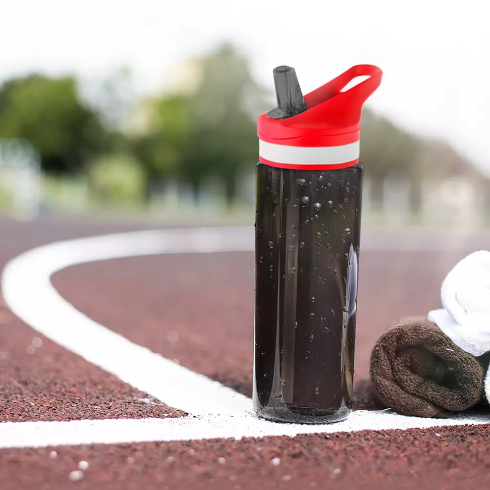 Бутылка для воды Jimy. Крышка бутылки с откидным носиком для питья. Удобно брать с собой. Упакована в полиэтиленовый пакет.
