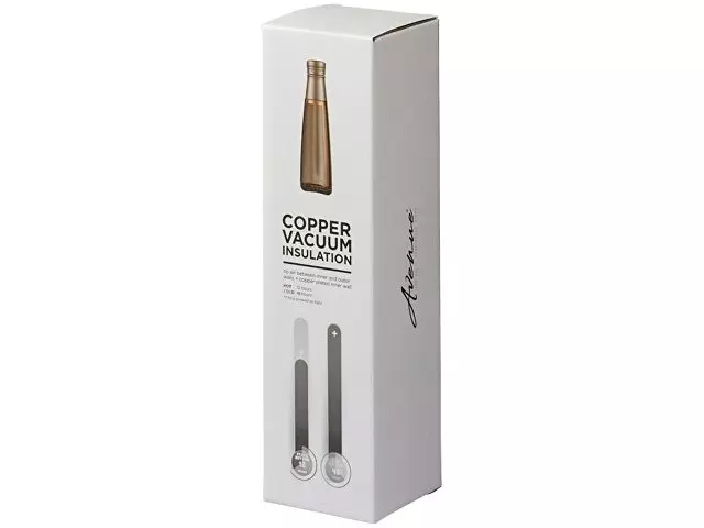 Вакуумная бутылка Duke с медным покрытием. Бутылка Duke изготовлена из нержавеющей стали (класс 18/8) с вакуумной изоляцией. Внутренняя стенка покрыта медью для достижения максимального сохранения температуры напитков: горячих до 12 часов и холодных- до 48 часов. Объем - 500 мл. Упакована в подарочную коробку Avenue. Нержавеющая сталь.