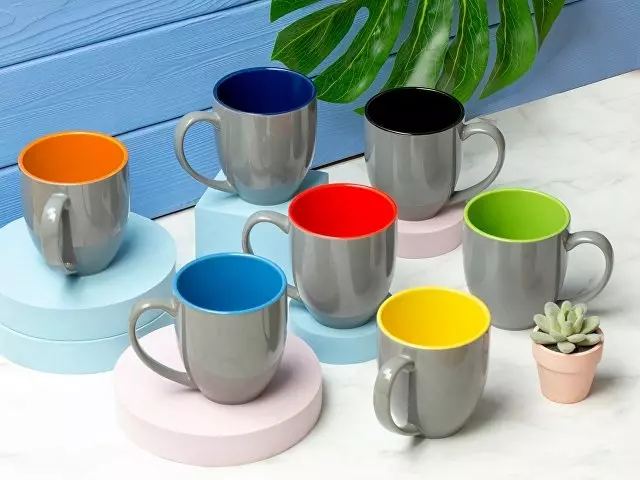 Кружка выполнена из керамики, её удобно держать в руке за счет большой ручки. Большой объём позволит наслаждаться любимым напитком в течение долгого времени. Нейтральный серый внешний цвет и большая палитра ярких внутренних идеально подойдут под нанесение любого логотипа, надписи, изображения.