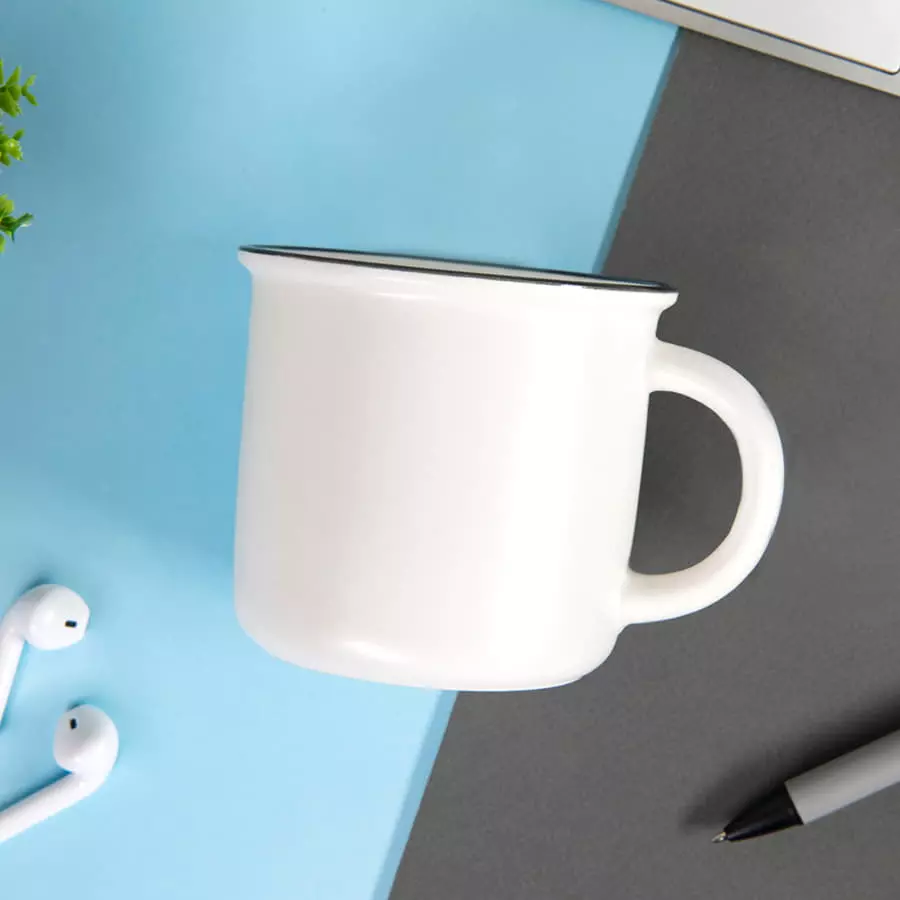 Кружка MATTI , белая матовая с синим кантом, 350 мл, фарфор