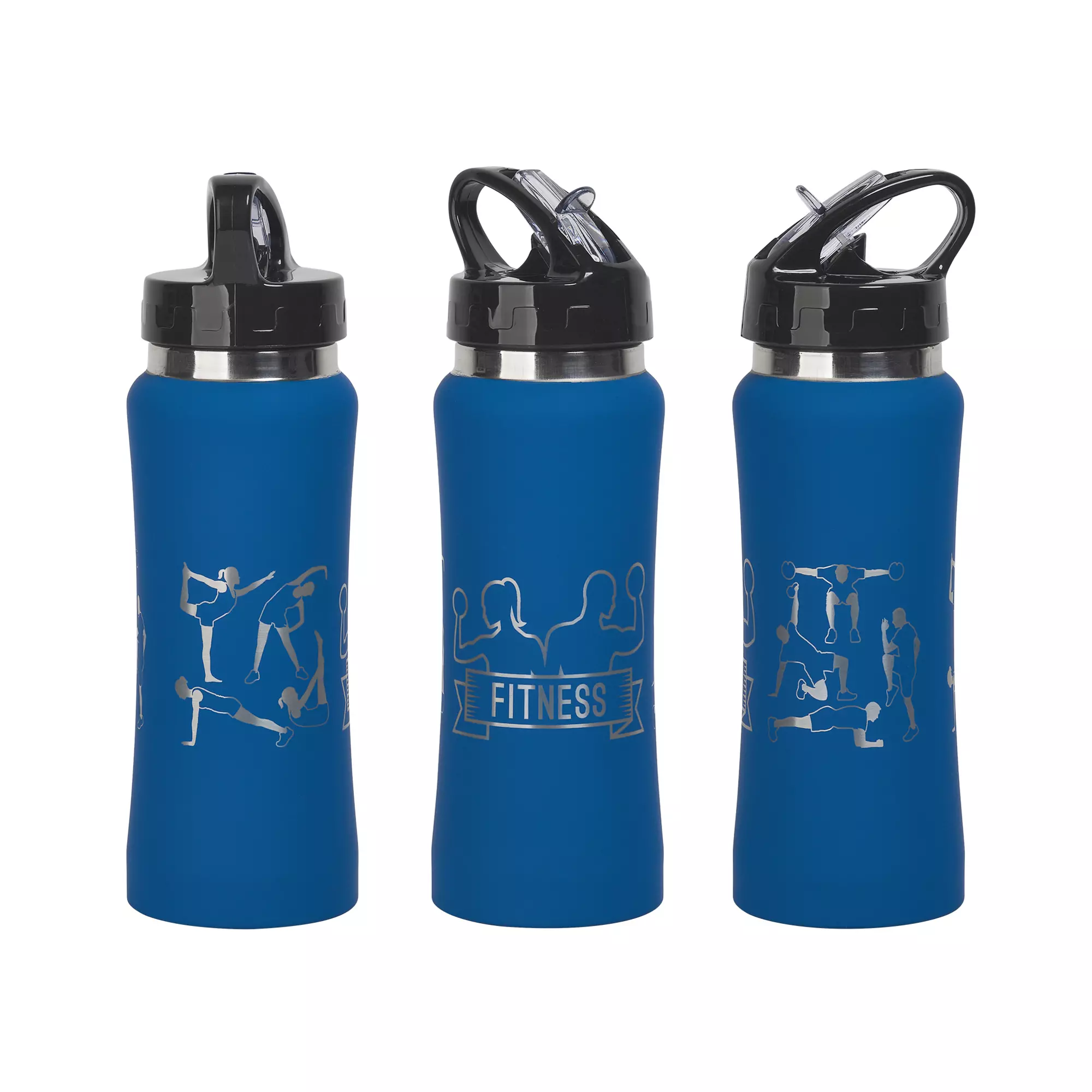 Емкость: 0,6 л Спортивная бутылка «Индиана» - незаменимый атрибут для повседневной жизни энергичных людей. Она изготовлена из пищевой нержавеющей стали с уникальным прорезиненным напылением  soft-touch. Конструкция бутылки имеет оригинальный и стильный дизайн, который можно усовершенствовать при помощи персональной гравировки по окружности встык. Крышка бутылки оснащена надежным клапаном. Такую бутылку можно использовать для переноски любой жидкости: воды, сока, витаминизированных напитков или протеиновых коктейлей. «Индиану» можно взять с собой в спортзал, поход, на прогулку, так как бутылку можно без труда закрепить в велосипедной раме, поясной сумке и спортивном рюкзаке. Внимание! Не рекомендуется мыть в посудомоечной машине.