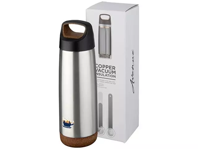 Спортивная медная бутылка с вакуумной изоляцией Valhalla объемом 600 мл. Двустенная вакуумная конструкция из нержавеющей стали с медной изоляцией позволит вашему напитку оставаться холодным в течение 48 часов и горячим - как минимум 12 часов. Кроме того, конструкция препятствует образованию конденсата на внешней стороне бутылки. Закручивающаяся крышка с элементами из пробки и противоскользящее дно. Объем - 600 мл. Упакована в подарочной коробке Avenue. Стальной корпус с пробкой.