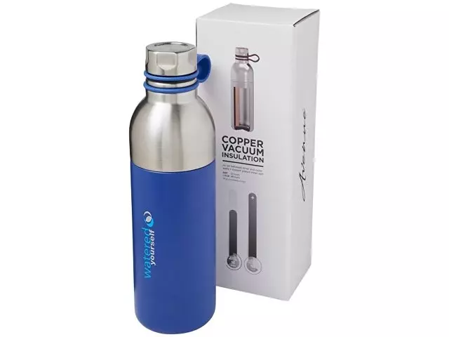 Медная спортивная бутылка с вакуумной изоляцией Koln объемом 590 мл. Двустенная вакуумная конструкция из нержавеющей стали с медной изоляцией позволит вашему напитку оставаться холодным в течение 48 часов и горячим — как минимум 12 часов. Кроме того, конструкция препятствует образованию конденсата на внешней стороне бутылки. Оснащена закручивающимся колпачком и крышкой из нержавеющей стали с удобной силиконовой петлей-держателем. Конструкция с двойным отверстием для легкой очистки и заполнения. Объем — 590 мл. Упакована в подарочной коробке Avenue. Нержавеющая сталь.