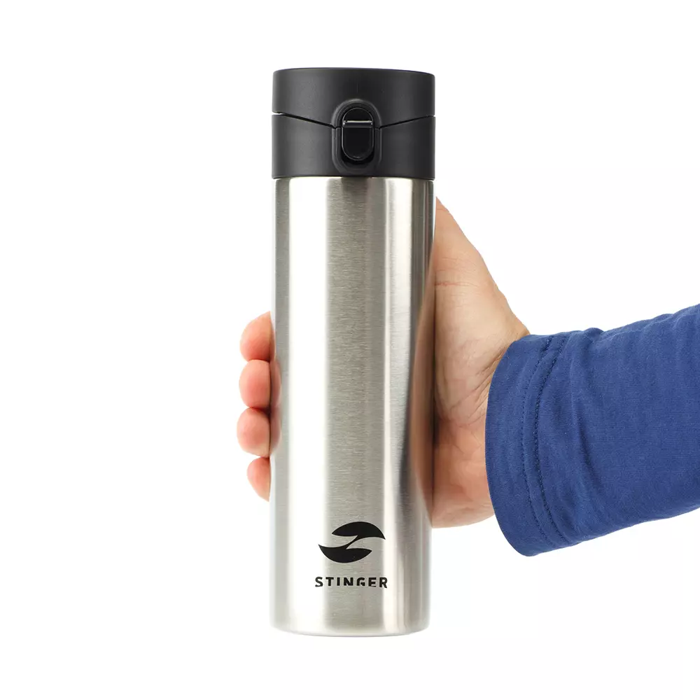 Термокружка Stinger, 0,5 л, сталь/пластик, серебристый, 6,7 x 6,7 x 22,4 см