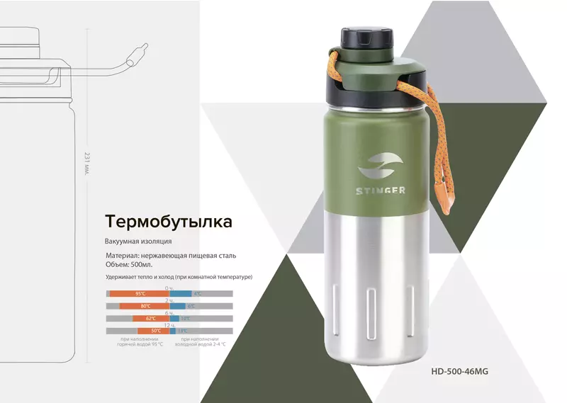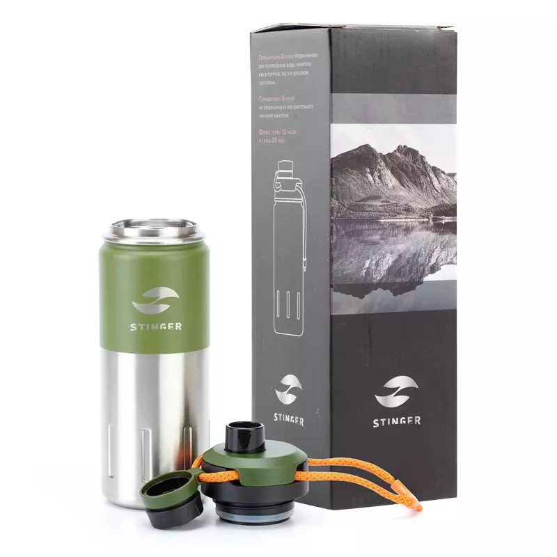 Термобутылка Stinger, 0,5 л, сталь/пластик, "зеленый мох", 7,5 х 23,1 см