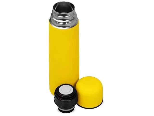 Универсальный термос с мягким прорезиненным покрытием софт-тач. Удобно и приятно держать в руке. Благодаря вакуумной изоляции и двойным стенкам сохраняет напитки горячими 24 часа. Герметичный клапан открывается и закрывается по легкому нажатию. Термос поставляется в дорожном чехле из искусственной кожи.