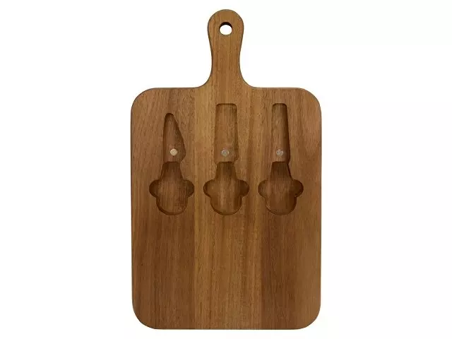 Набор для сыра и закусок "Parmesan", выполненный из высококачественной акации станет отличным подарком для тех, кто любит наслаждаться закусками за бокалом вкусного вина. Набор состоит из доски, двух ножей и вилки для сыра. На доске есть ручка для удобства переноски.