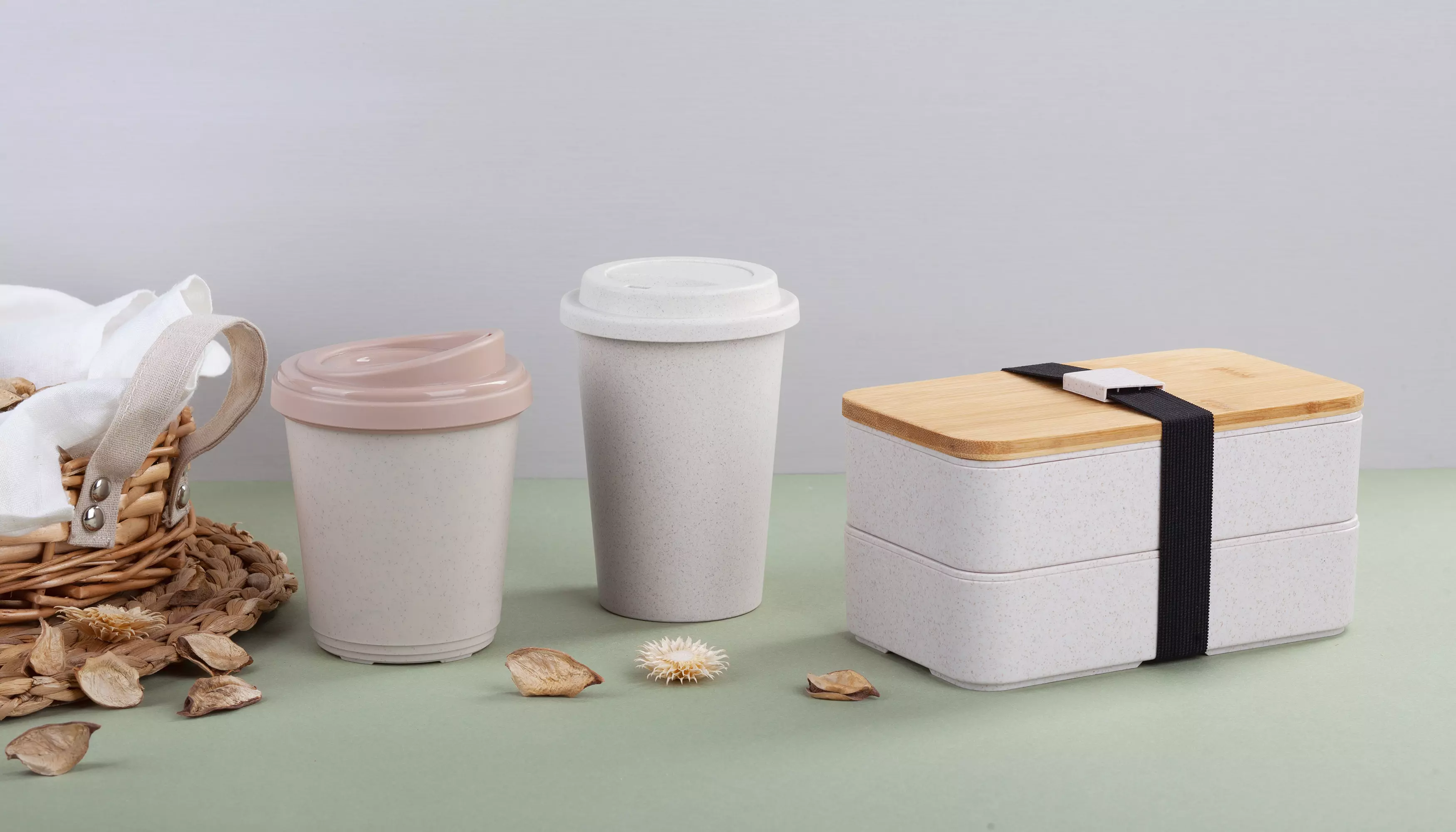 Стакан для горячих напитков с замещением пластика. За счет использования натуральных компонентов в составе удалось вдвое сократить использование пластика. Состав: 45% пищевой пластик 45% биоразлагаемая смесь из пшеничной соломы 10% бамбуковое волокно Объем 0,45 л.