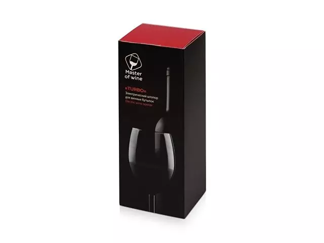 Потрясающе полезный и впечатляющий подарок ценителям вин - электрический штопор ""Turbo"". С ним всегда легко и просто! Всего 7 секунд и пару нажатий - и бутылка вина откупорена! В комплектации: штопор, нож для обрезания фольги, инструкция по использованию, USB кабель. • Штопор дополнен ножом, предназначенным для срезания фольги с горлышка винной бутылки; • пробка выкручивается с помощью нажатия всего одной кнопки; • скорость открывания – 7 секунд; • питание: литиевый аккумулятор; • уровень шума до 65 Дб; • диаметр пробки: 18-23 мм; • наружный диаметр бутылки не более 35 мм; • поставляется в брендированной коробке с шубером; •емкость аккумулятора 800M mAh; •продолжительность работы: до 60 бутылок на одной зарядке; •8 часов для полной подзарядки штопора; •наличие индикатора уровня заряда. Нижняя и верхняя часть одной и той же кнопки отвечают за спуск и поднятие спирали, которая вытаскивает пробку из бутылки.