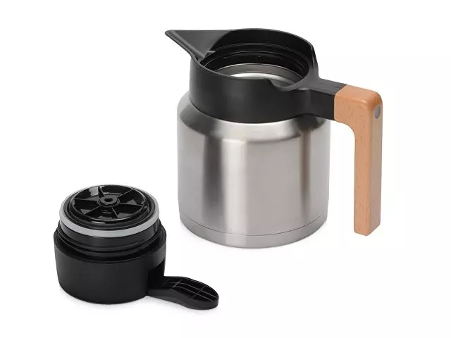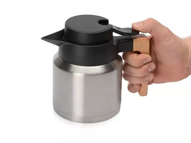 Вакуумный термокувшин с деревянной ручкой позволяет не только удобно заваривать кофе или чай, но и сохранять напиток горячим в течение долгого периода времени. Он выполнен из пищевой долговечной стали 304 марки, которая не подвержена коррозии и отличается повышенной прочностью. Двойные стенки с вакуумной изоляцией между ними защищают напиток от остывания, сохраняя температуру до 12 часов. Ручка из дерева имеет эргономичный дизайн, который позволяет не обжигаться при использовании. Устройство термокувшина весьма интересно: для того, чтобы налить в чашку кофе или чай, вам нужно нажать на клапан крышки, а когда напиток закончится – вы просто открутите ее, чтобы наполнить емкость новой порцией, и закрутите обратно. Благодаря такому устройству термокувшин более герметичен, чем стандартные чайники, и удерживает температуру настолько долго.