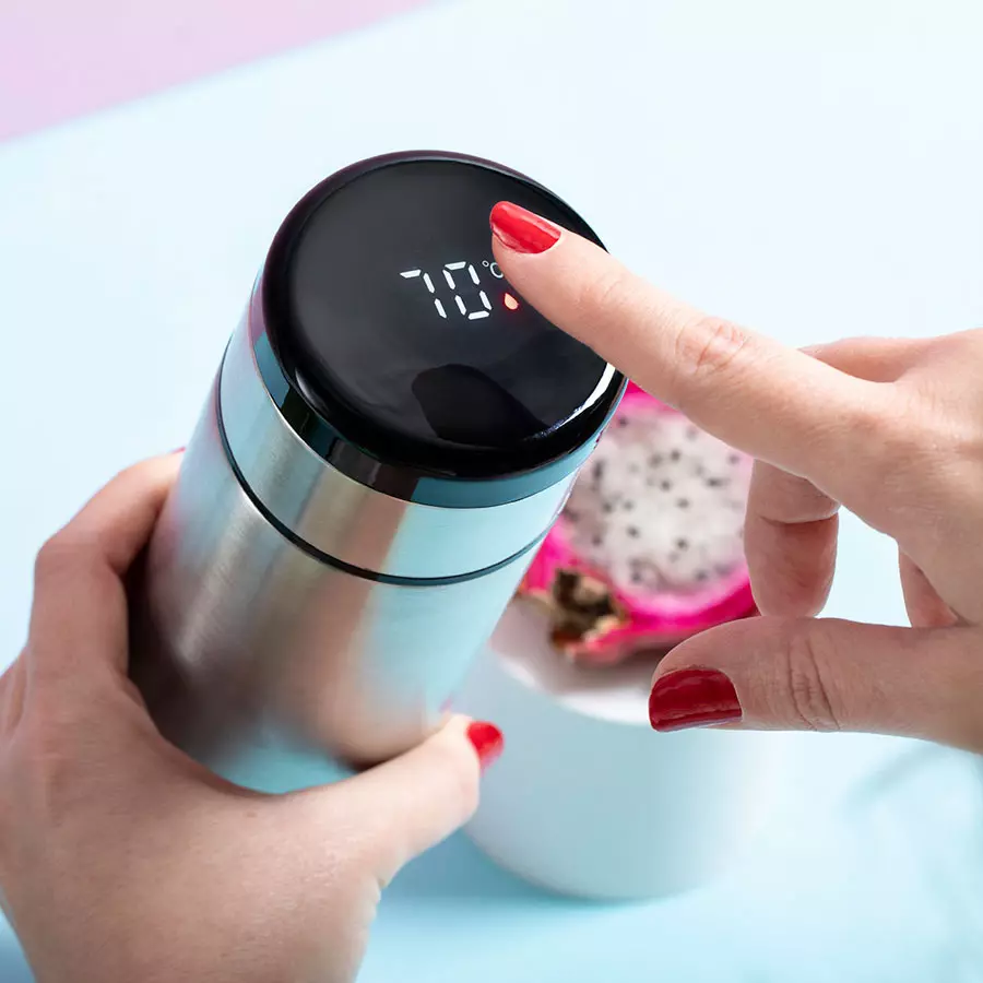 Термос KAUCEX с ситечком и индикатором температуры, нержавеющая сталь, 420 мл, 24х6,5см