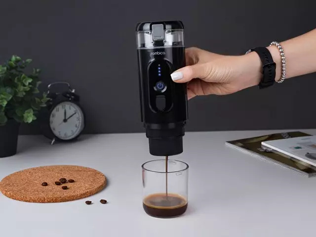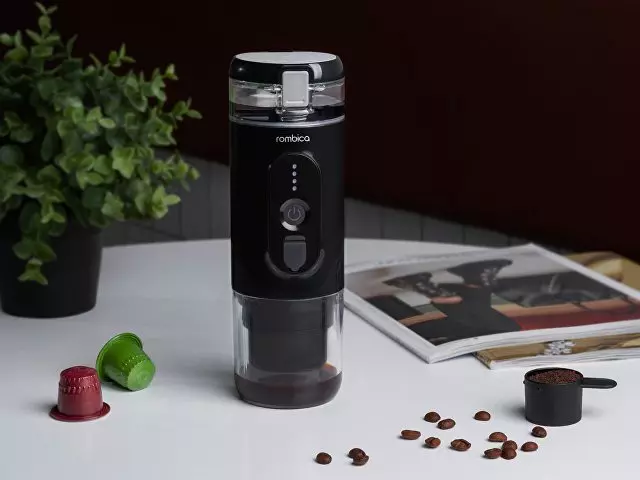 Портативная кофемашина для эспрессо, встроенная батарея 2500 мАч, 100 чашек кофе на одной зарядке без подогрева, 4 с подогревом, заряжается от повербанка или ноутбука. — Помещается в кармане рюкзака — Приготовление любых напитков на основе эспрессо (американо, капучино, маккиато, ристретто, лунго) — Управляется одной кнопкой — Адаптеры для молотого и капсульного кофе в комплекте — Время подогрева воды: 3-5 минут — Быстрая зарядка QC 3.0